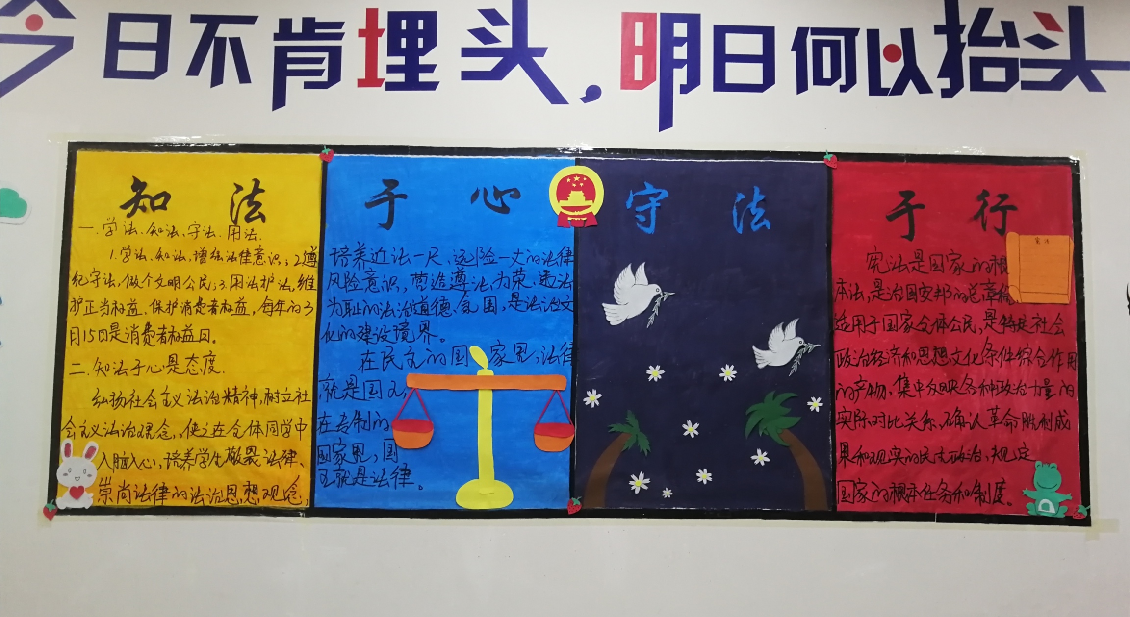 ?此次主題板報活動的開展,進(jìn)一步充實了板報的宣傳教育功能,展現(xiàn)了我系學(xué)子良好的精神風(fēng)貌,培養(yǎng)了大學(xué)生知法守法的優(yōu)良品質(zhì),營造了健康、積極進(jìn)取的學(xué)風(fēng),更加提升了學(xué)生的法律常識。我系將借此活動為契機,加強我系學(xué)生的法律道德意識,引導(dǎo)我系學(xué)生知法于心,守法于行。