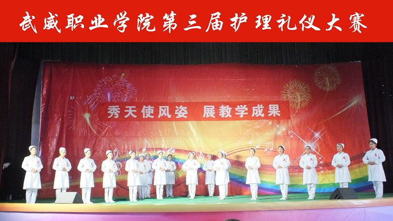 為推進(jìn)校園文化建設(shè),強化學(xué)生專業(yè)思想,提升學(xué)生職業(yè)素質(zhì),12月27日下午,在學(xué)院大禮堂舉辦了“武威職業(yè)學(xué)院第三屆護(hù)理禮儀大賽”, 學(xué)院黨委副書記趙明、副院長潘玉華、副院長田迎春、教務(wù)處副處長賈龍應(yīng)邀出席本次活動,護(hù)理系書記張建輝、系主任韓曉萍及護(hù)理系1200多名師生觀看了比賽。