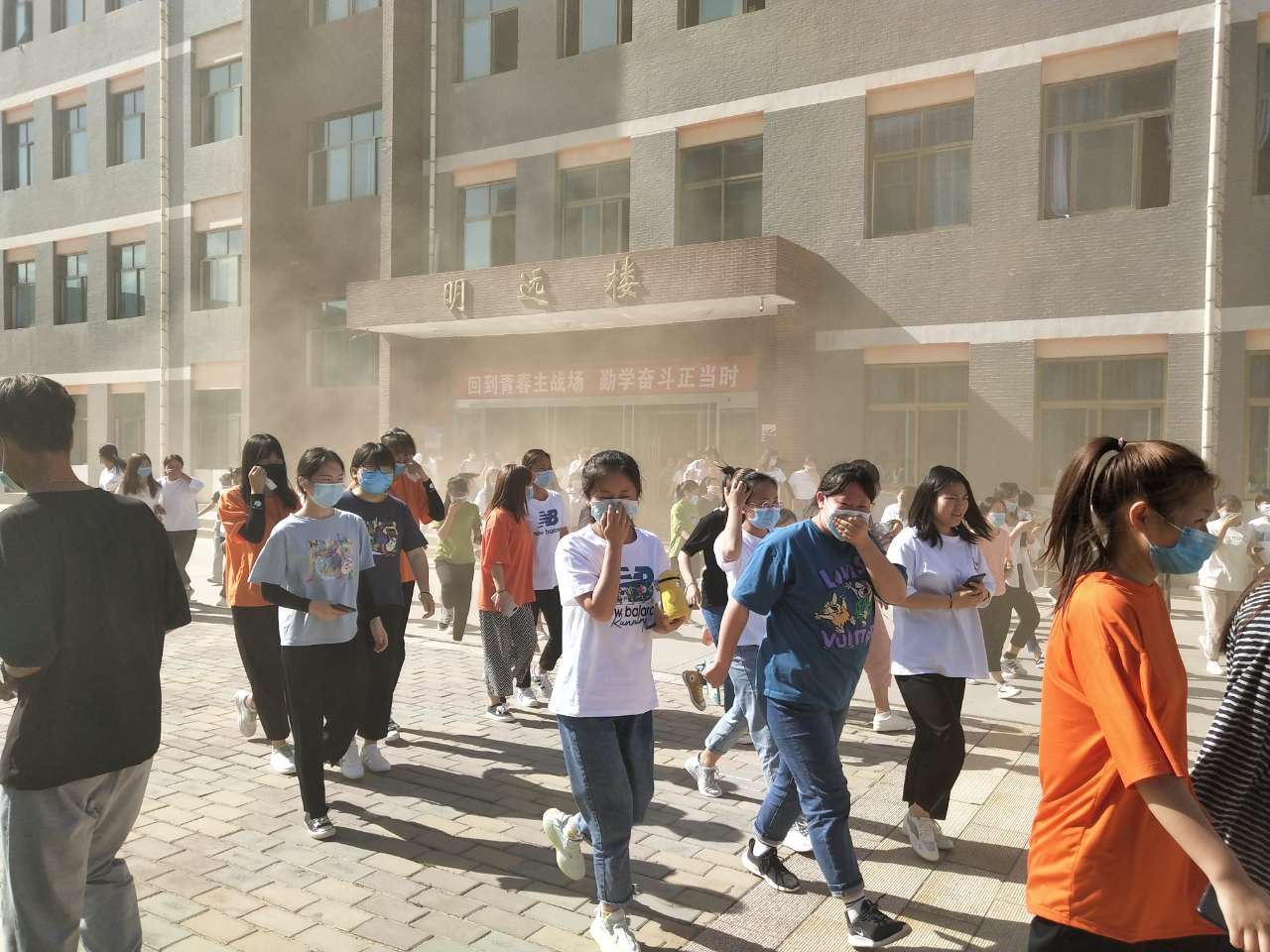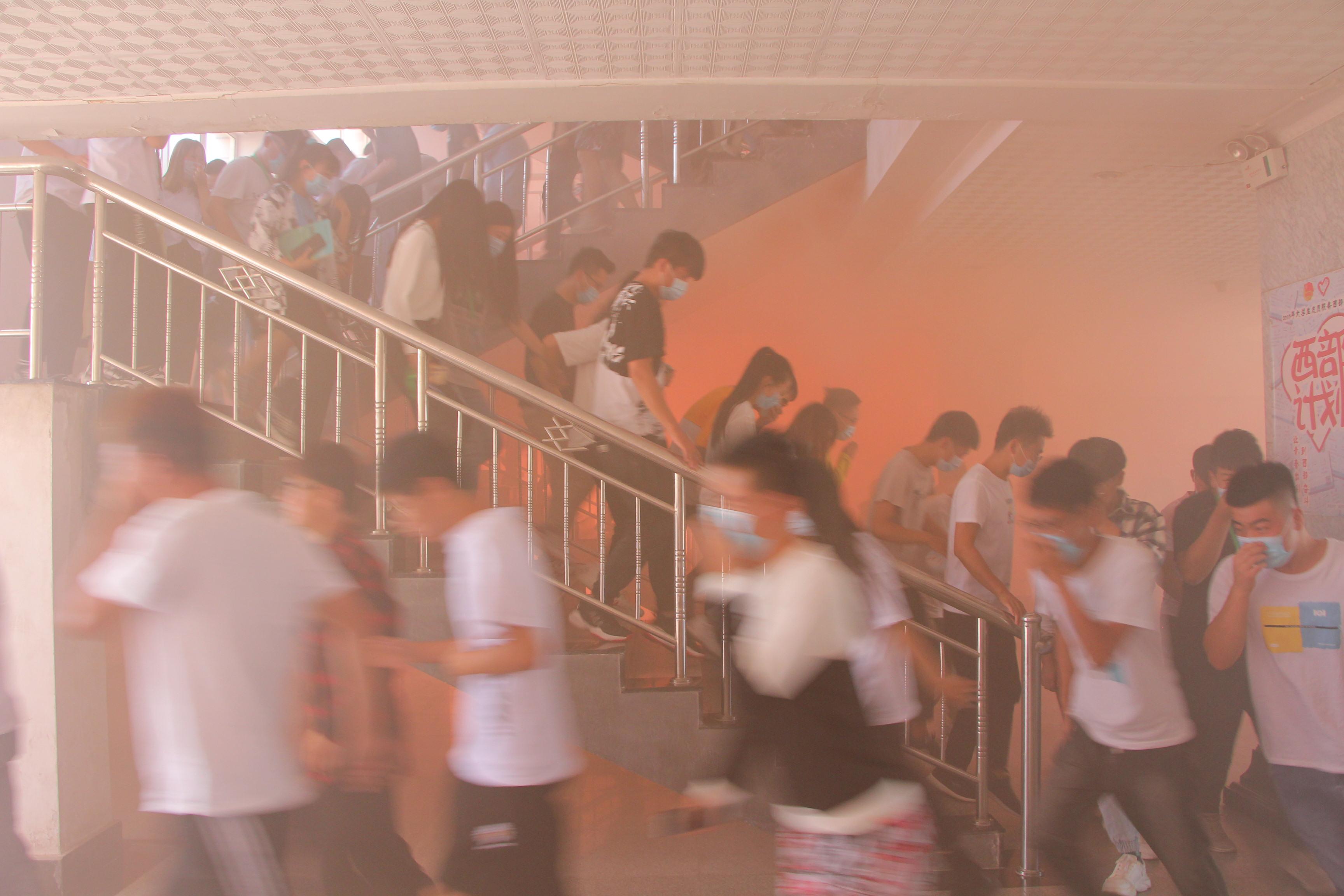 下午4點(diǎn)46分,疏散演練正式開始。隨著消防警報(bào)響起,各教學(xué)班上課教師立即停止上課組織學(xué)生疏散,學(xué)生用濕毛巾捂住口鼻,按照逃生路線有序疏散。在3分鐘內(nèi),6000多名參演師生全部撤離到了安全地帶,演練取得圓滿成功。