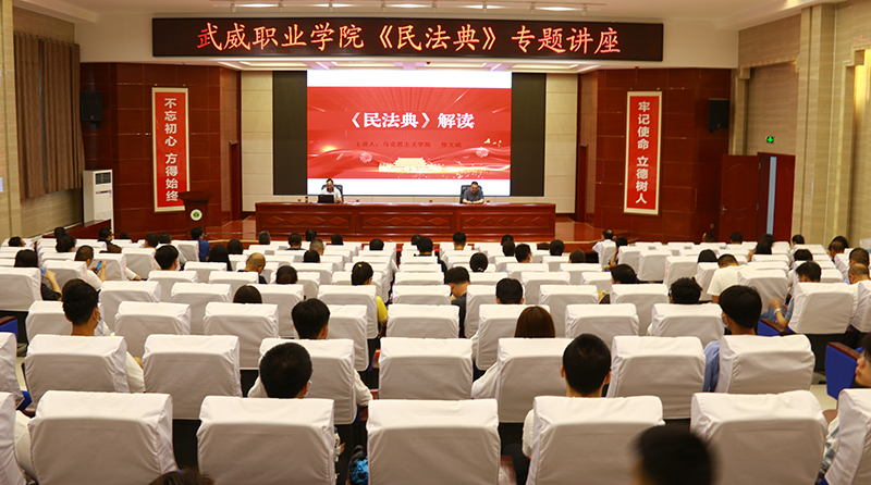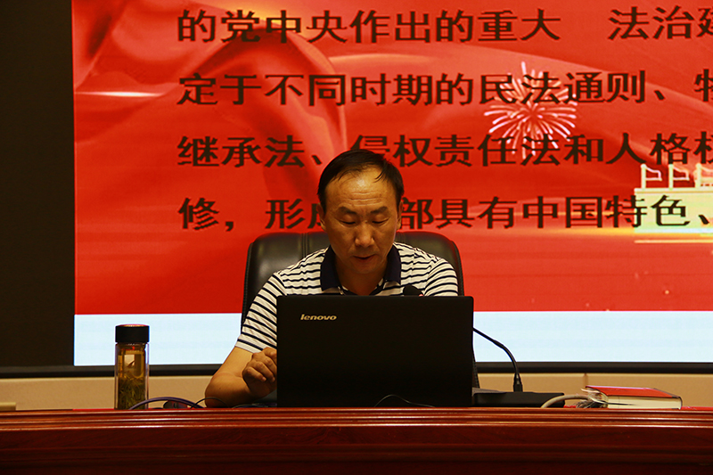 《中華人民共和國民法典》頒布后,在全國引起熱烈反響。為深入貫徹落實習近平總書記關(guān)于“切實實施民法典”的重要講話精神,深入領(lǐng)會《中華人民共和國民法典》核心要義,切實推進《中華人民共和國民法典》貫徹實施,7月9日下午,學院在菁英廳舉辦《中華人民共和國民法典》專題講座。講座邀請學院馬克思主義學院副教授徐文成為干部師生解讀《中華人民共和國民法典》。學院副科級以上干部、師生代表100余人參加了講座。講座由宣傳統(tǒng)戰(zhàn)部部長王繼林主持。