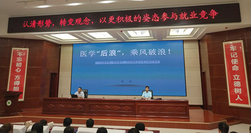 7月12日晚,護(hù)理系在大學(xué)生活動(dòng)中心菁英廳、明遠(yuǎn)樓211、213、311等四個(gè)會(huì)場(chǎng)舉辦“護(hù)理系2021屆畢業(yè)生就業(yè)指導(dǎo)講座”,邀請(qǐng)學(xué)院招生就業(yè)處副處長(zhǎng)董鵬同志作“醫(yī)學(xué)后浪、乘風(fēng)破浪”為主題的專題講座。護(hù)理系黨總支書(shū)記張建輝主持講座,護(hù)理系2021屆畢業(yè)班班主任、全體輔導(dǎo)員及2021屆全體畢業(yè)生共計(jì)647人參加講座。