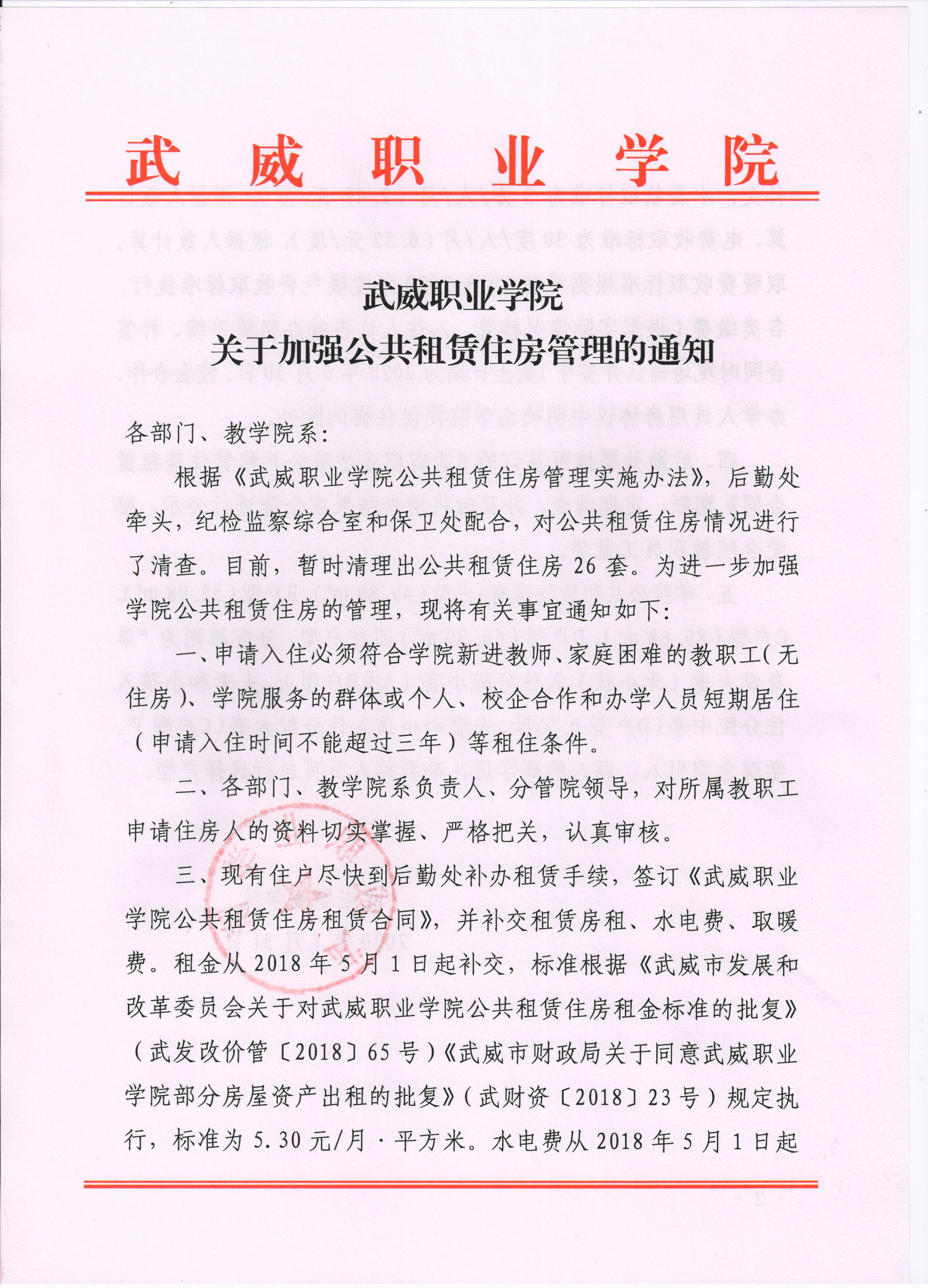 《武威職業(yè)學院關(guān)于加強公共租賃住房管理的通知》