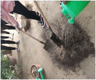 種植體驗活動前,為了讓學(xué)生更好地了解種植知識,張老師給同學(xué)們講解了植物種植的條件、如何根據(jù)季節(jié)選擇種植的種類,以及育苗、澆水、施肥、防蟲過程中的注意事項。在活動中,學(xué)生與老師合作完成種菜任務(wù),一起探討種植經(jīng)驗、勞動技能。