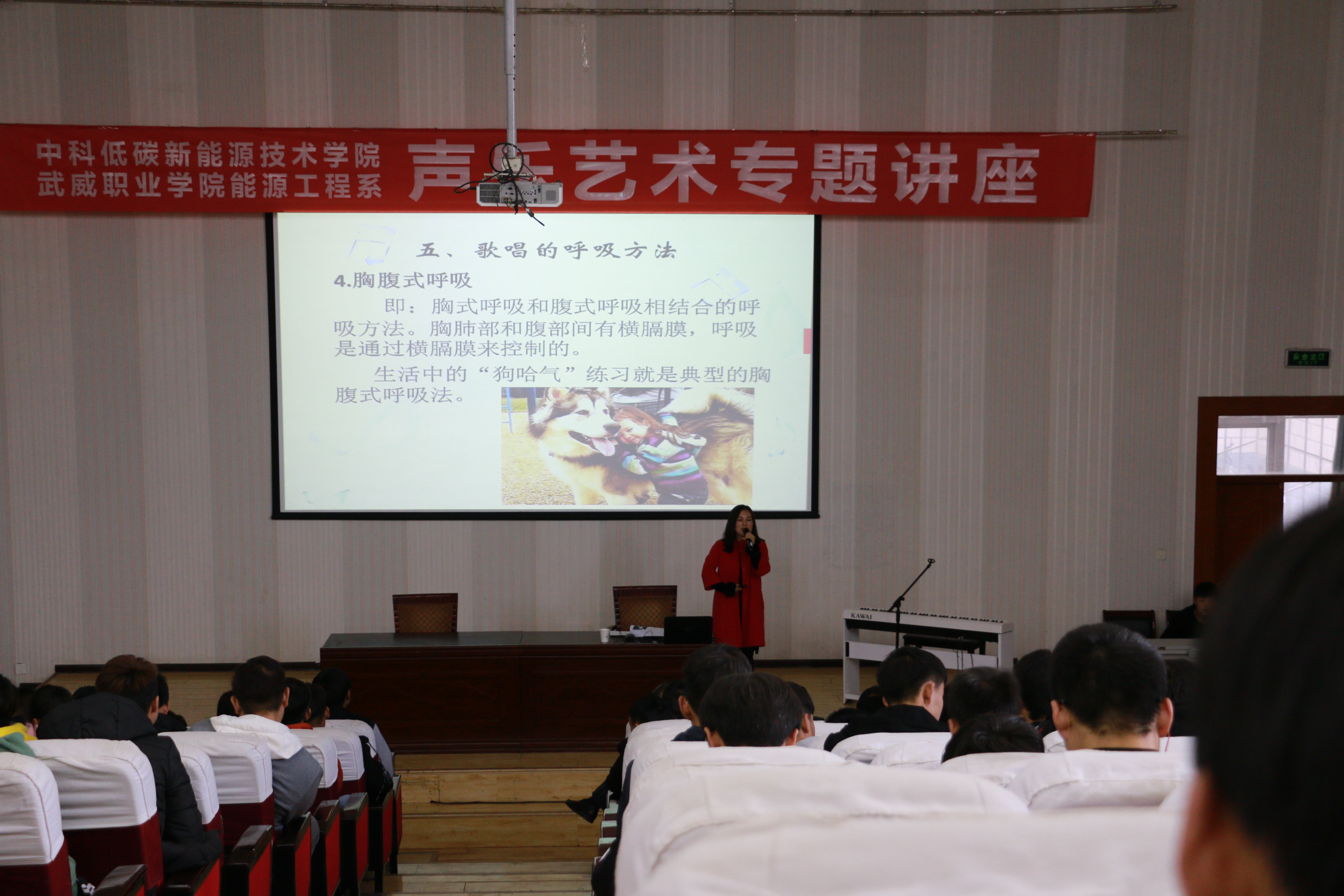 11月15日,學(xué)院邀請(qǐng)人文藝術(shù)教育系聲樂(lè)教師王小娟為18級(jí)新生舉辦了一場(chǎng)聲樂(lè)藝術(shù)專題講座,講座由能源工程系黨總支書(shū)記黃文源主持,部分教師參加了講座。