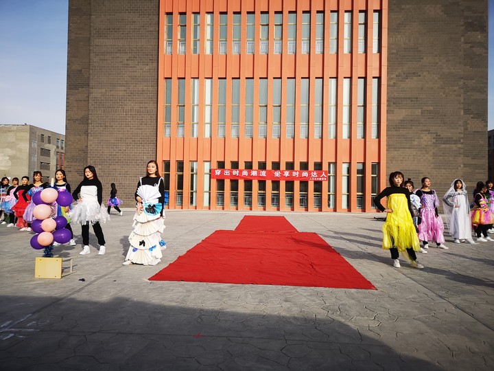 時裝秀由人文藝術(shù)教育系學(xué)前教育專業(yè)同學(xué)親手制作,再由同學(xué)們身著舊窗簾裁剪的長尾裙、廢撲克牌制作的“國王”套裝、廣告紙變身的鎧甲、塑料袋制成的披風(fēng)等等,跟著音樂的節(jié)奏,走起了“貓步”。通過這項活動使同學(xué)們要保護環(huán)境,節(jié)約糧食,倡導(dǎo)全體同學(xué)樹立環(huán)保意識和節(jié)約意識,希望環(huán)保理念能夠扎根于同學(xué)們的心中。