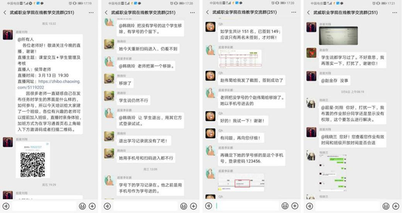 2月15日-20日,各系先后制定完成本系在線教學(xué)工作方案和教學(xué)計劃表,教務(wù)處進一步修訂完善了學(xué)院在線教學(xué)工作實施方案,并在超星技術(shù)人員支持下,對學(xué)院252名專兼職教師開展線上教學(xué)技能和教學(xué)平臺使用培訓(xùn)。教務(wù)處向各教學(xué)系下發(fā)了教師版和學(xué)生版《武威職業(yè)學(xué)院在線教學(xué)平臺使用指南》,繼續(xù)優(yōu)化完善學(xué)院在線教學(xué)平臺的數(shù)據(jù)對接、課程搭建、資源補充和系統(tǒng)性能測試工作,并建立了技術(shù)溝通微信群,為教師開展在線教學(xué)提供技術(shù)指導(dǎo)。2月22日,學(xué)院召開專門會議安排部署疫情期間在線教學(xué)工作,印發(fā)《武威職業(yè)學(xué)院新型冠狀病毒肺炎疫情防控期間在線教學(xué)工作實施方案》。