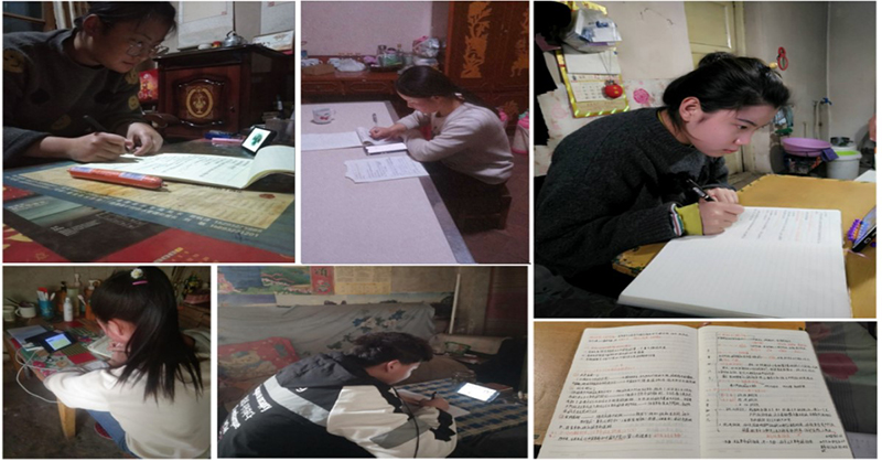 學(xué)生在家利用手機積極完成學(xué)習(xí)任務(wù)