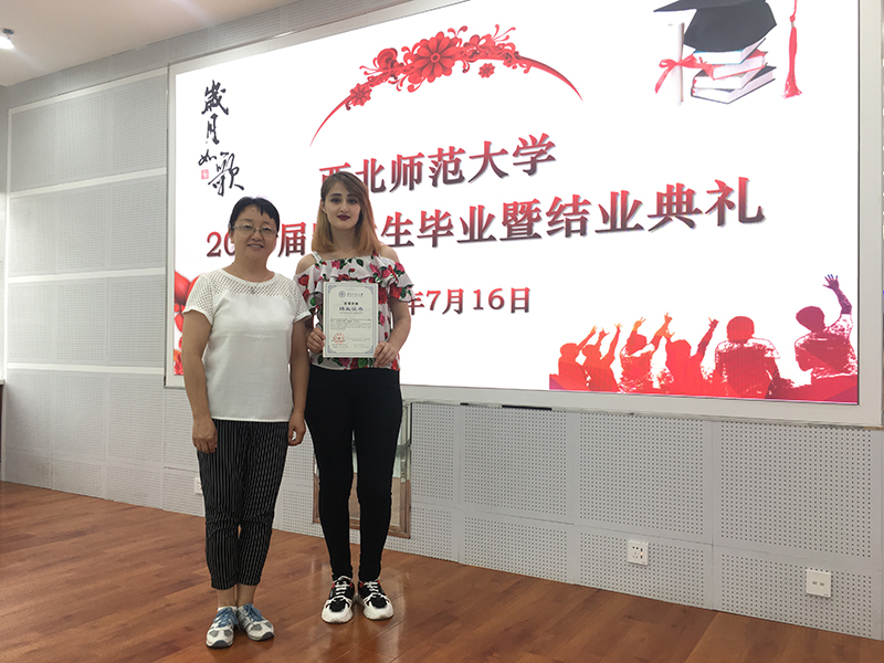畢業(yè)典禮在留學(xué)生視頻播放中開始,視頻內(nèi)容真實(shí),情真意切,如實(shí)記錄了留學(xué)生在華學(xué)習(xí)、生活的點(diǎn)點(diǎn)滴滴,展示了“一帶一路”合作倡議下教育對(duì)外開放的成果。西北師范大學(xué)國(guó)際文化交流學(xué)院書記李東海宣讀結(jié)業(yè)生名單,我院19級(jí)5名留學(xué)生赫然在列。西北師范大學(xué)國(guó)際合作與交流處處長(zhǎng)王君朝向留學(xué)生祝詞,對(duì)留學(xué)生經(jīng)過努力學(xué)習(xí)、順利畢業(yè)表示衷心祝賀。留學(xué)生代表用流利漢語發(fā)言,既反映了漢語學(xué)習(xí)的效果,也表達(dá)了對(duì)漢語學(xué)習(xí)生活的留戀,對(duì)學(xué)校培育的感激,對(duì)中國(guó)政府和中國(guó)人民對(duì)外友好的真心感謝。留學(xué)生在激動(dòng)喜悅的心情中領(lǐng)取了結(jié)業(yè)證書及紀(jì)念品。