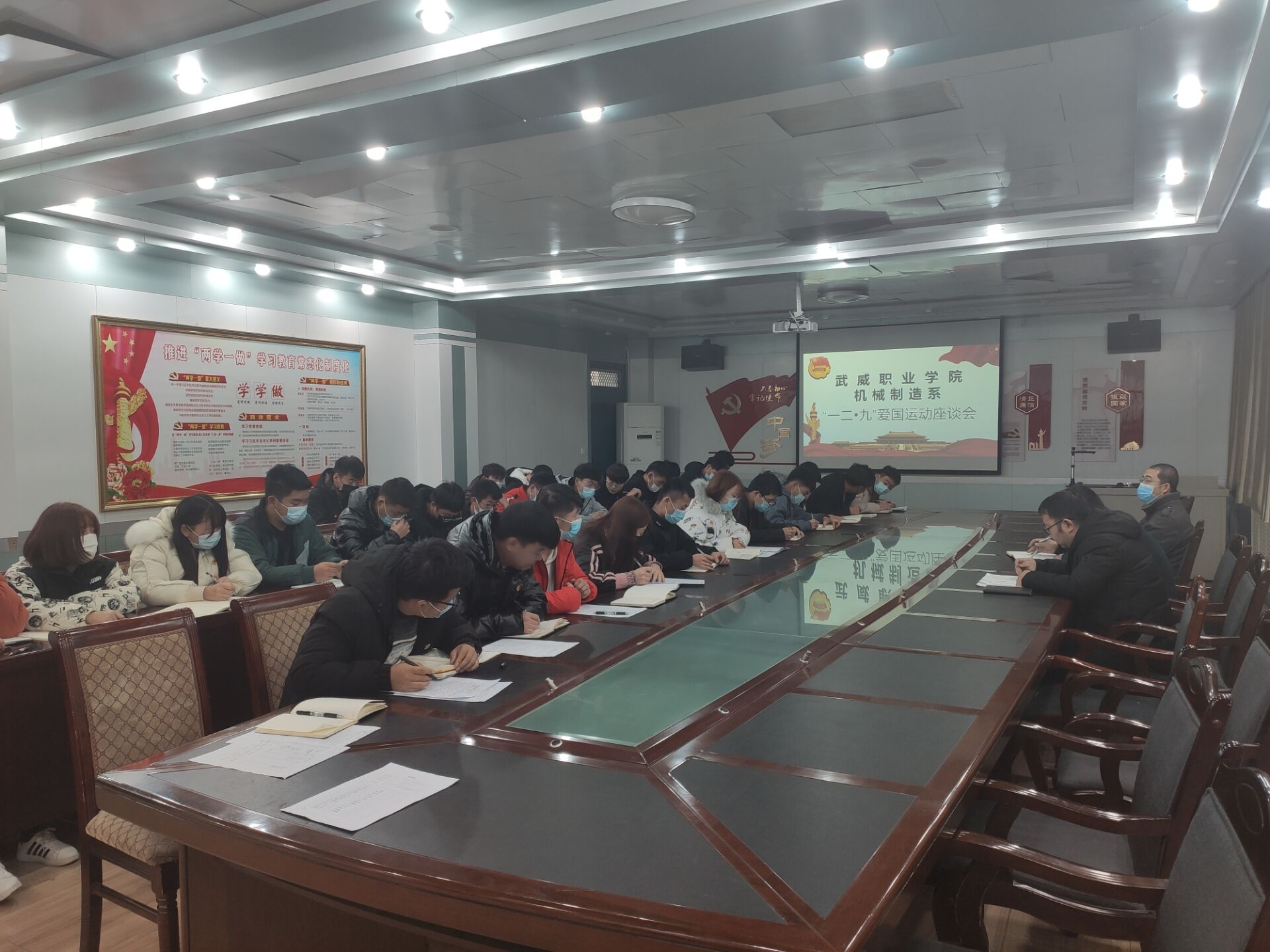 為了紀(jì)念“一二·九”愛國運動,我系于2020年12月9日,在博學(xué)樓二樓黨員活動室召開了武威職業(yè)學(xué)院機(jī)械制造系“一二·九”愛國運動座談會,參會人員有大二團(tuán)學(xué)委員會全體成員以及18級、19級、20級各班團(tuán)支書。