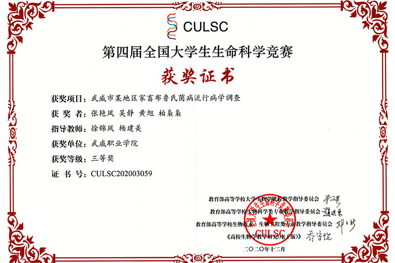近日,第四屆全國大學生生命科學競賽落下帷幕,經(jīng)過激烈角逐,我院推薦參賽的兩個項目獲得全國二等獎三等獎,學院成為省內(nèi)獲得此次全國比賽獎項的唯一高職院校。在此前舉辦的甘肅賽區(qū)比賽中,我院兩個項目獲得甘肅省一等獎1項,二等獎1項,被推薦參加全國總決賽。此次獲得全國競賽獲獎不僅填補了我院生在全國競賽中獲獎的空白,也為學院創(chuàng)建“雙高”院校增添了重要成果。