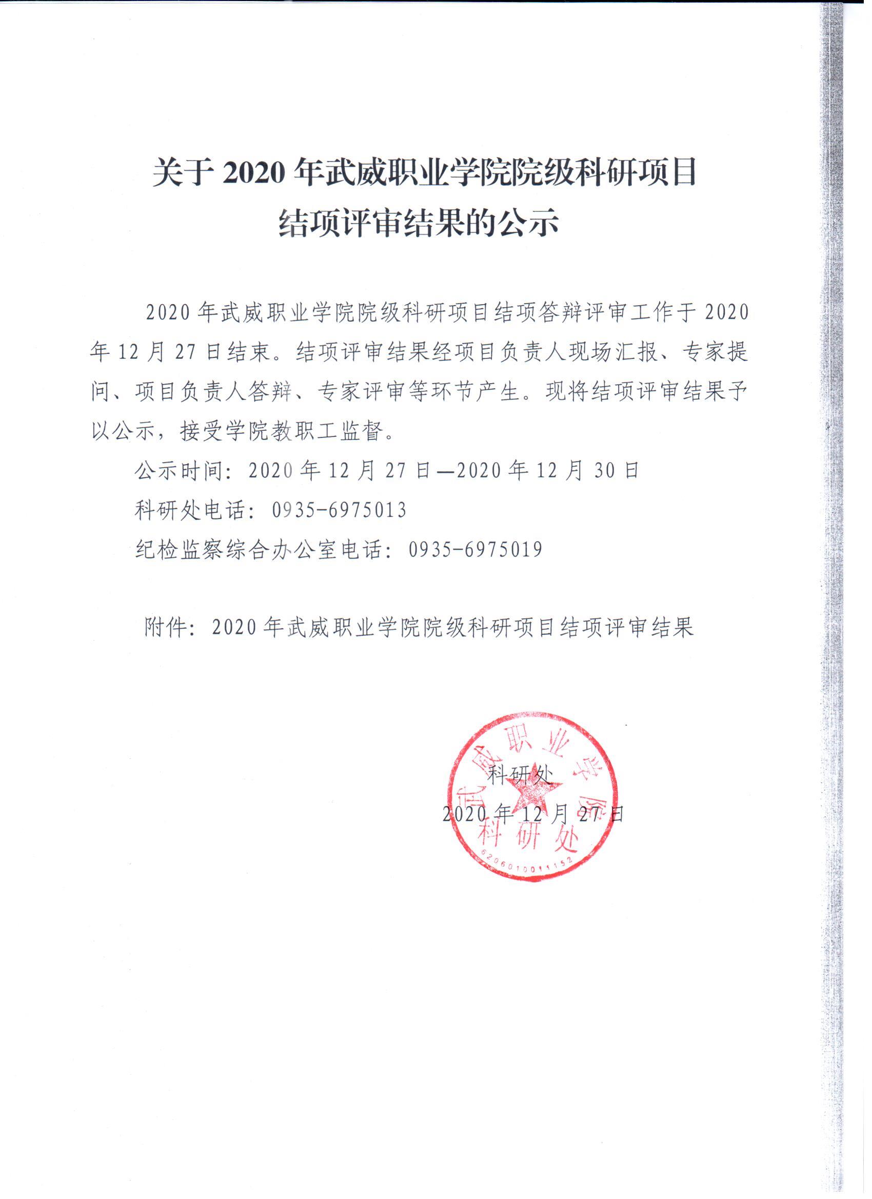 關(guān)于2020年武威職業(yè)學(xué)院院級(jí)科研項(xiàng)目結(jié)項(xiàng)評(píng)審結(jié)果公示