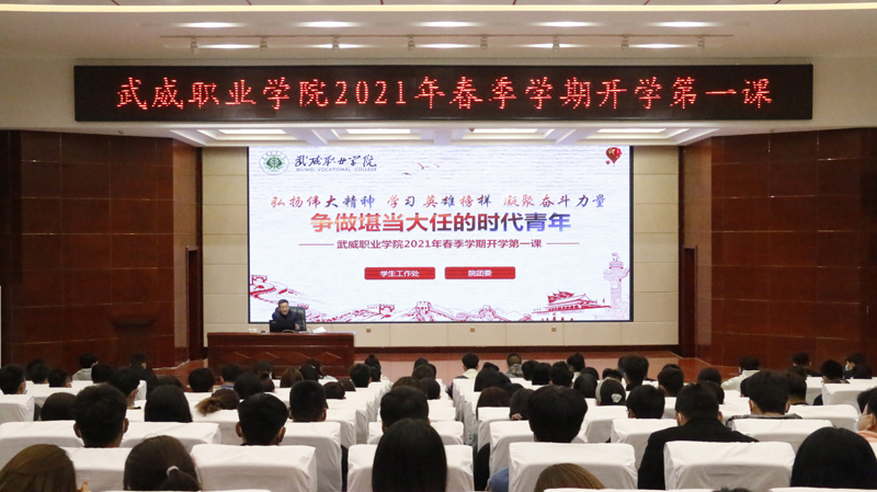 3月8日,是武威職業(yè)學(xué)院2021年春季學(xué)期開(kāi)學(xué)第一天,為進(jìn)一步加強(qiáng)大學(xué)生思想政治教育,培育和踐行社會(huì)主義核心價(jià)值觀,培養(yǎng)學(xué)生的愛(ài)國(guó)情強(qiáng)國(guó)志報(bào)國(guó)行,增強(qiáng)學(xué)生安全意識(shí)和防護(hù)能力,保障教育教學(xué)工作平穩(wěn)有序進(jìn)行。學(xué)院利用晚自習(xí)時(shí)間為8100余名學(xué)生共同進(jìn)行了“弘揚(yáng)偉大精神,學(xué)習(xí)英雄榜樣,凝聚奮斗力量,爭(zhēng)做堪當(dāng)大任的時(shí)代青年”為主題的“開(kāi)學(xué)第一課”。