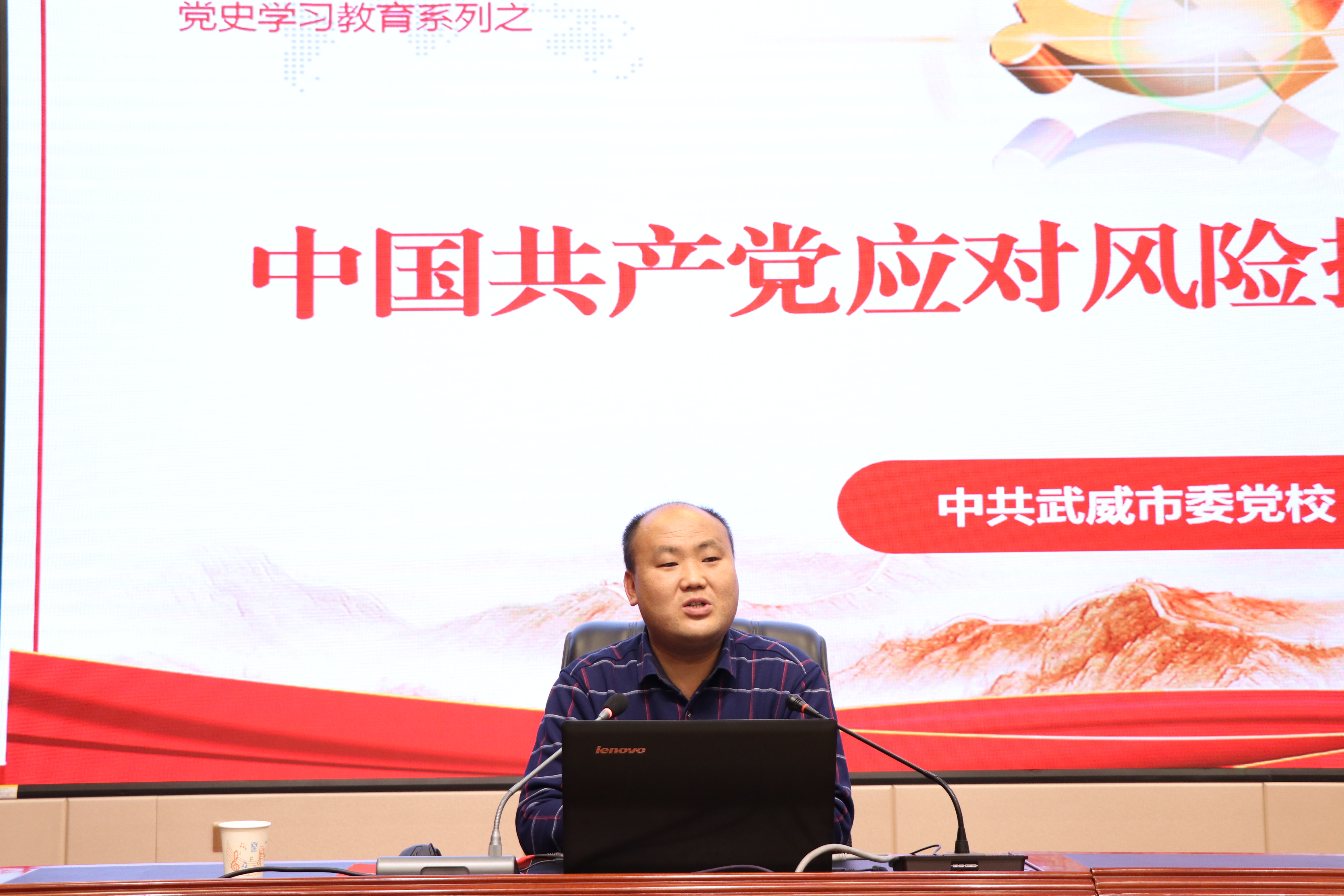 魏樂儀以《中國(guó)共產(chǎn)黨應(yīng)對(duì)風(fēng)險(xiǎn)挑戰(zhàn)的經(jīng)驗(yàn)啟示》為題,從強(qiáng)國(guó)征程、黨史開篇,百年大黨的深沉歷史自覺;危中尋機(jī)、困中破局,黨應(yīng)對(duì)風(fēng)險(xiǎn)挑戰(zhàn)的歷史進(jìn)程;以史為鏡,以史明志,推進(jìn)偉大歷史偉業(yè)三個(gè)方面給參加讀書班的黨員干部和師生作了一場(chǎng)精彩的專題輔導(dǎo)。