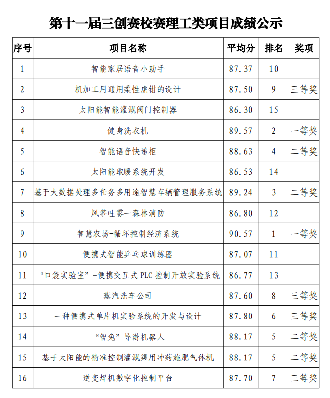 按照第十一屆三創(chuàng)賽省賽組委會要求,學(xué)院于4月24日在創(chuàng)新創(chuàng)業(yè)中心舉辦了校賽,經(jīng)學(xué)生團隊申報、現(xiàn)場答辯及專家評審環(huán)節(jié),校賽已圓滿完成。按照校賽方案,一等獎不超過參賽隊數(shù)的 10%,二等獎不超過參賽隊數(shù)的 20%,三等獎不超過參賽隊數(shù)的 30%。現(xiàn)將第十一屆三創(chuàng)賽校賽獲獎項目成績和獲獎名次予以公示,公示期三日。