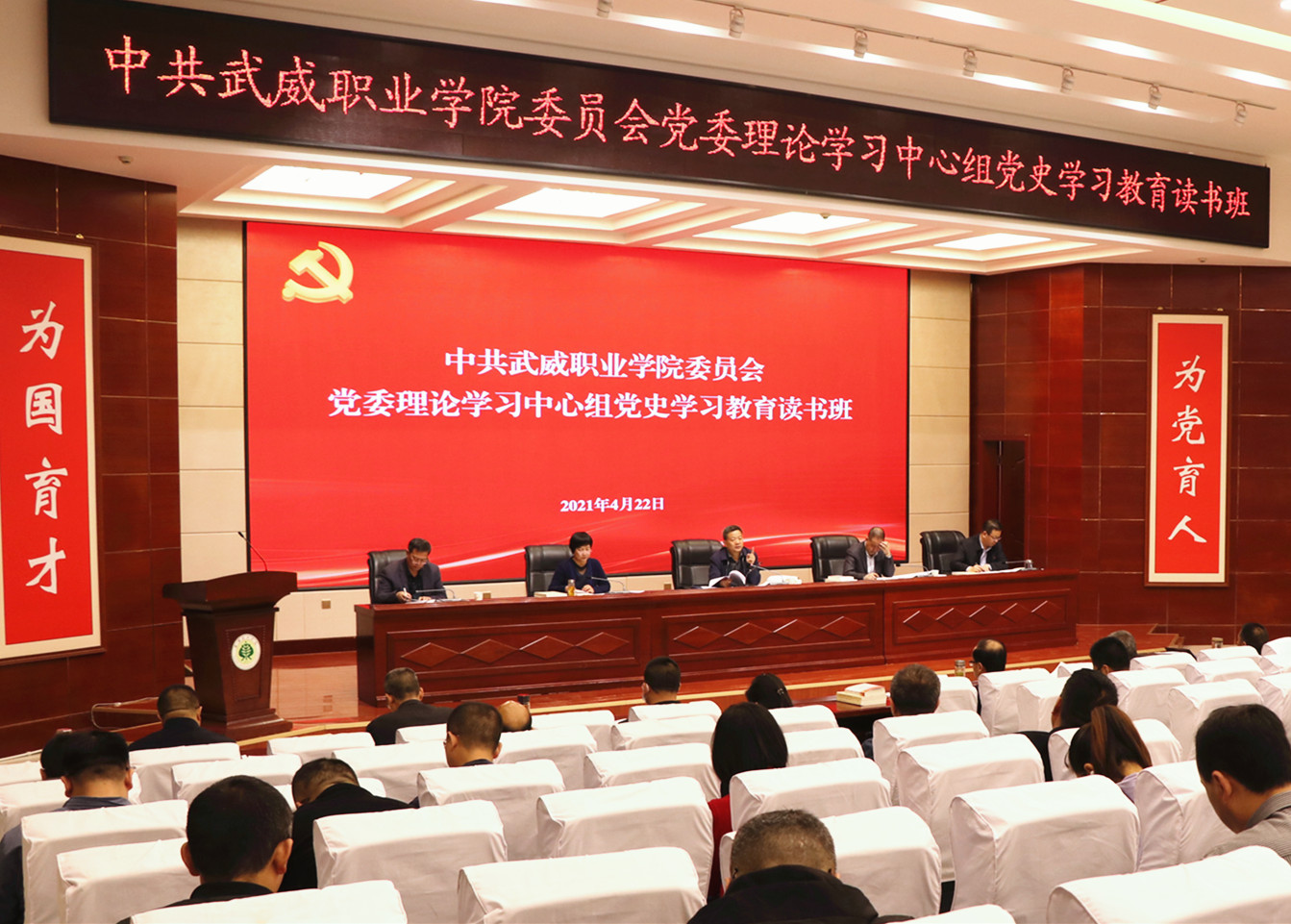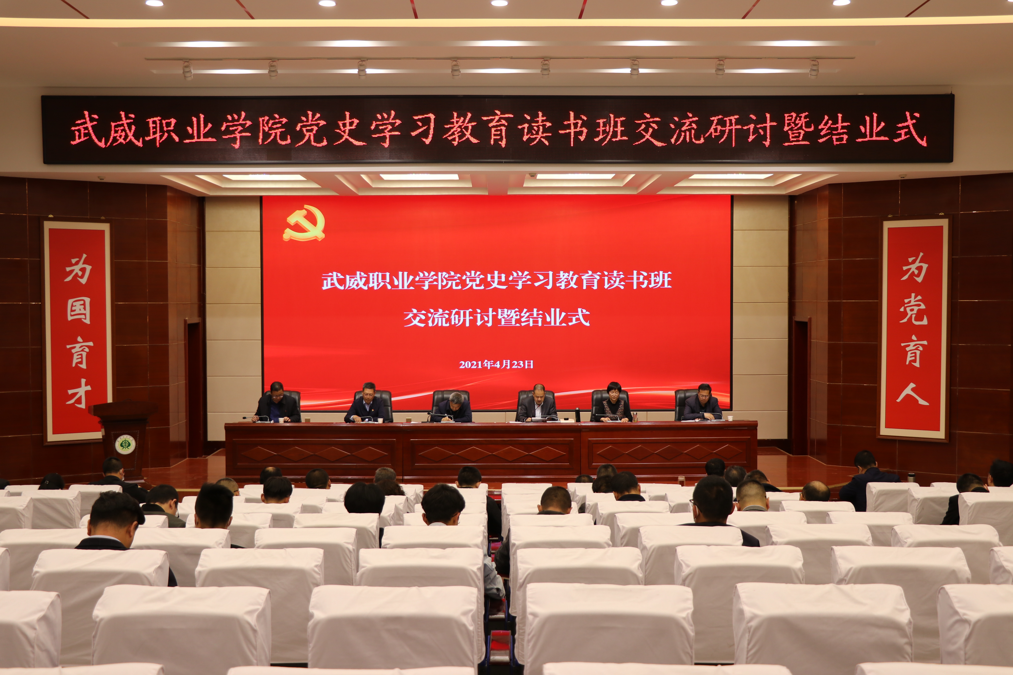 4月22日-23日,在第26個(gè)“世界讀書(shū)日”到來(lái)之際,武威職業(yè)學(xué)院黨委舉行了為期2天的黨史學(xué)習(xí)教育讀書(shū)班。學(xué)院領(lǐng)導(dǎo)班子成員、全體中層干部、各基層黨組織書(shū)記和支委委員、師生代表參加了讀書(shū)班集中學(xué)習(xí)。通過(guò)集中學(xué)習(xí)、專題輔導(dǎo)、經(jīng)典誦讀、知識(shí)競(jìng)賽、交流研討等形式引導(dǎo)黨員干部師生從百年黨史中學(xué)出堅(jiān)強(qiáng)黨性、學(xué)出堅(jiān)定信念、學(xué)出絕對(duì)忠誠(chéng)、學(xué)出使命擔(dān)當(dāng)。