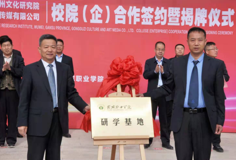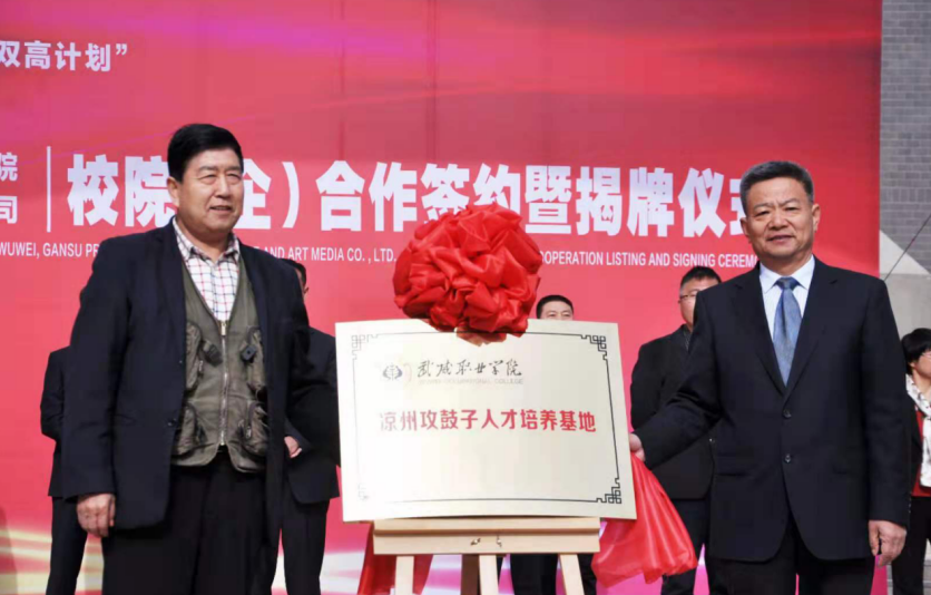 4月27日,學院與武威市涼州文化研究院、甘肅武威攻鼓子文化藝術傳媒有限公司“校(院)企戰(zhàn)略合作”簽約暨揭牌儀式在學院圖書館前廣場舉行。