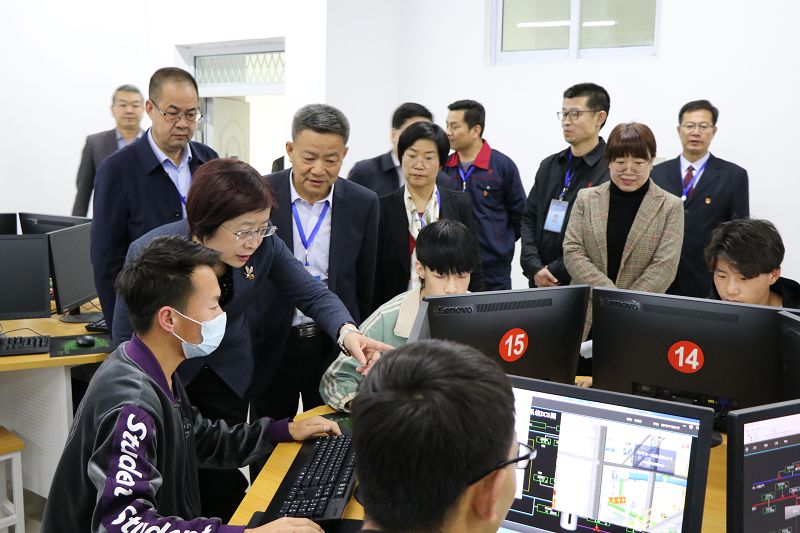 學(xué)院黨委書(shū)記、院長(zhǎng)趙明向王海燕一行詳細(xì)匯報(bào)了學(xué)院基本情況、黨史學(xué)習(xí)教育、技能甘肅、“雙高計(jì)劃”項(xiàng)目建設(shè)、人才培養(yǎng)、師資隊(duì)伍建設(shè)、招生就業(yè)、校企合作、“1+X”證書(shū)試點(diǎn)、技能大賽、課程思政改革等情況,重點(diǎn)對(duì)與中科院上海應(yīng)用物理研究所聯(lián)合舉辦中科低碳新能源技術(shù)學(xué)院情況進(jìn)行了匯報(bào)。王海燕一行實(shí)地查看了中科低碳新能源技術(shù)學(xué)院實(shí)驗(yàn)實(shí)訓(xùn)室,并對(duì)積極備戰(zhàn)國(guó)賽的師生給予鼓勵(lì)。