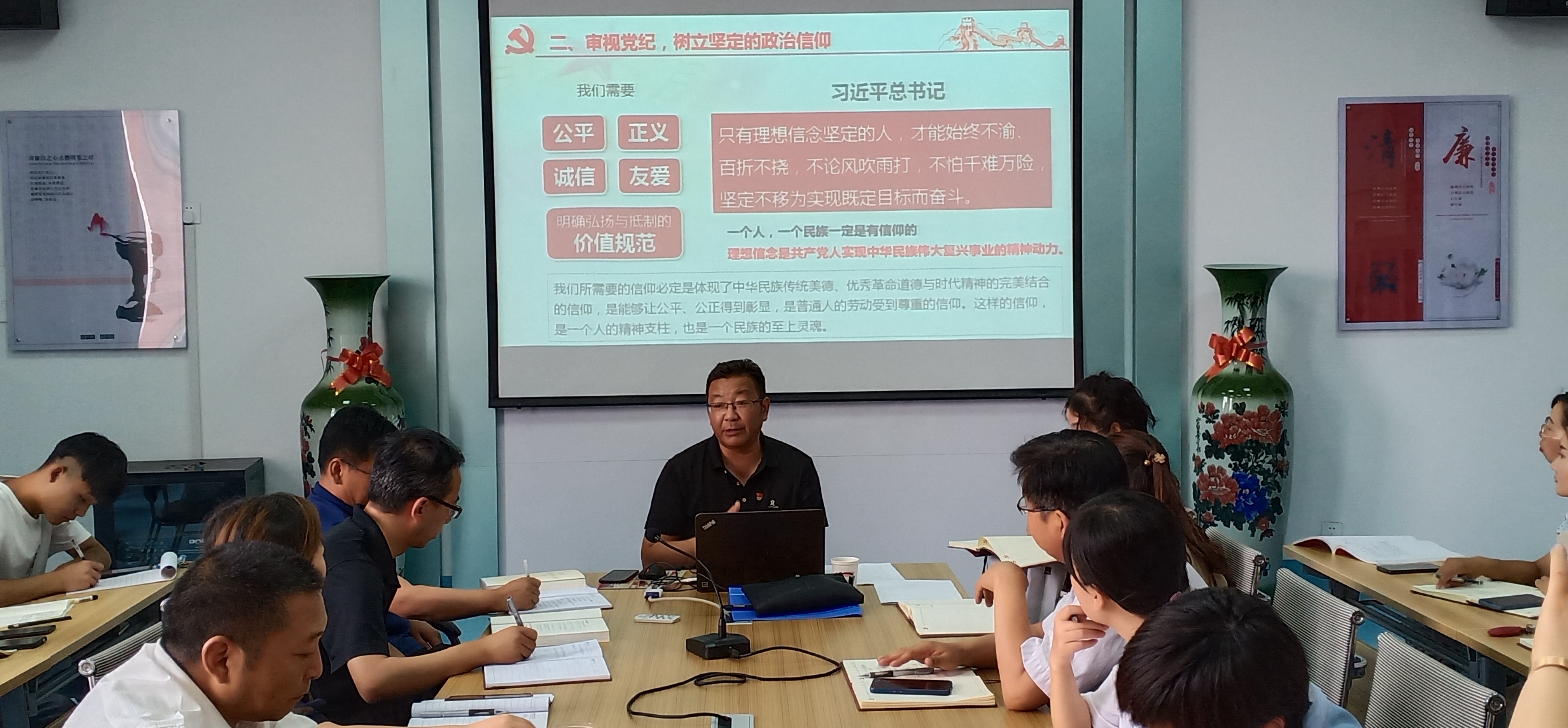 陳曉煜以《不忘初心 牢記歷史,增強(qiáng)廉潔意識(shí)》為題,用樸實(shí)精煉的語(yǔ)言、身邊生動(dòng)的事例,重點(diǎn)從不忘初心,重溫黨的歷史和黨紀(jì)歷史;審視黨紀(jì),樹(shù)立堅(jiān)定的政治信仰;解析腐敗,認(rèn)清腐敗的現(xiàn)狀及危害;增強(qiáng)廉潔意識(shí),筑牢思想道德防線四個(gè)方面進(jìn)行了講解。