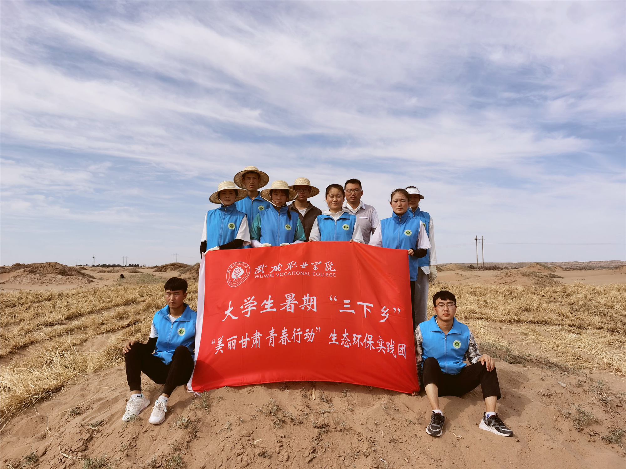 為深入學習貫徹習近平總書記生態(tài)文明建設重要戰(zhàn)略思想,引導和幫助學院青年學生積極融入武威市創(chuàng)建文明城市,以實際行動致力于荒漠化治理、踐行兩山理論。2021年7月15日至21日,在武威職業(yè)學院團委、教學院系指導下,來自7個專業(yè)、1名留學生所組成的“美麗甘肅 青春行動”青少年生態(tài)環(huán)保行動暑期社會實踐小隊奔赴武威市三縣一區(qū)部分地區(qū)進行“綠色夢想·戈壁荒漠‘智’富行動”暑期社會實踐。