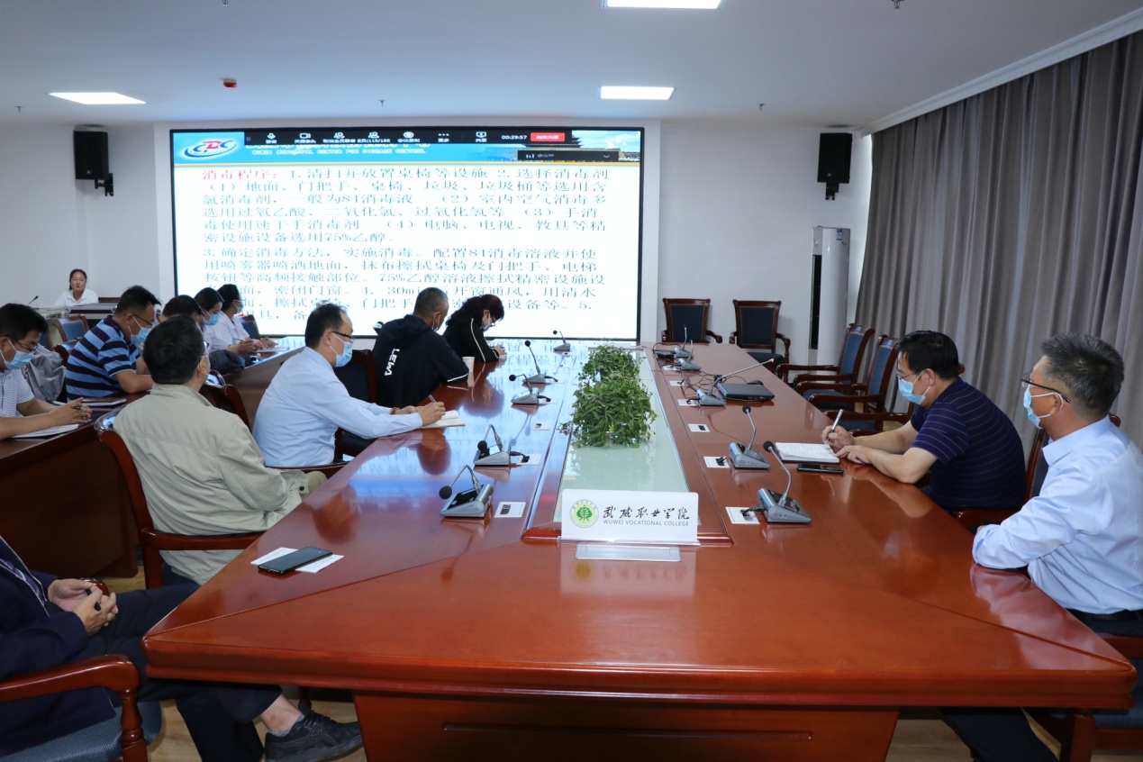 演練結束后,武威市疾控中心疫情防控專家在學院能源科技樓811會議室對學院疫情防控領導小組全體成員進行疫情防控知識培訓,全體輔導員、班主任,醫(yī)務室全體人員及其他相關人員通過在線視頻學習,培訓會議由學院副院長張開禮主持。
