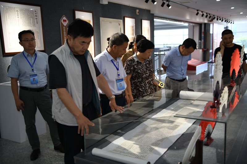 會后,考察組一行在學院領導的陪同下先后參觀考察了學院紅色文化藝術館、中華優(yōu)秀傳統(tǒng)文化藝術作品展,趙明向考察組做了詳細講解。