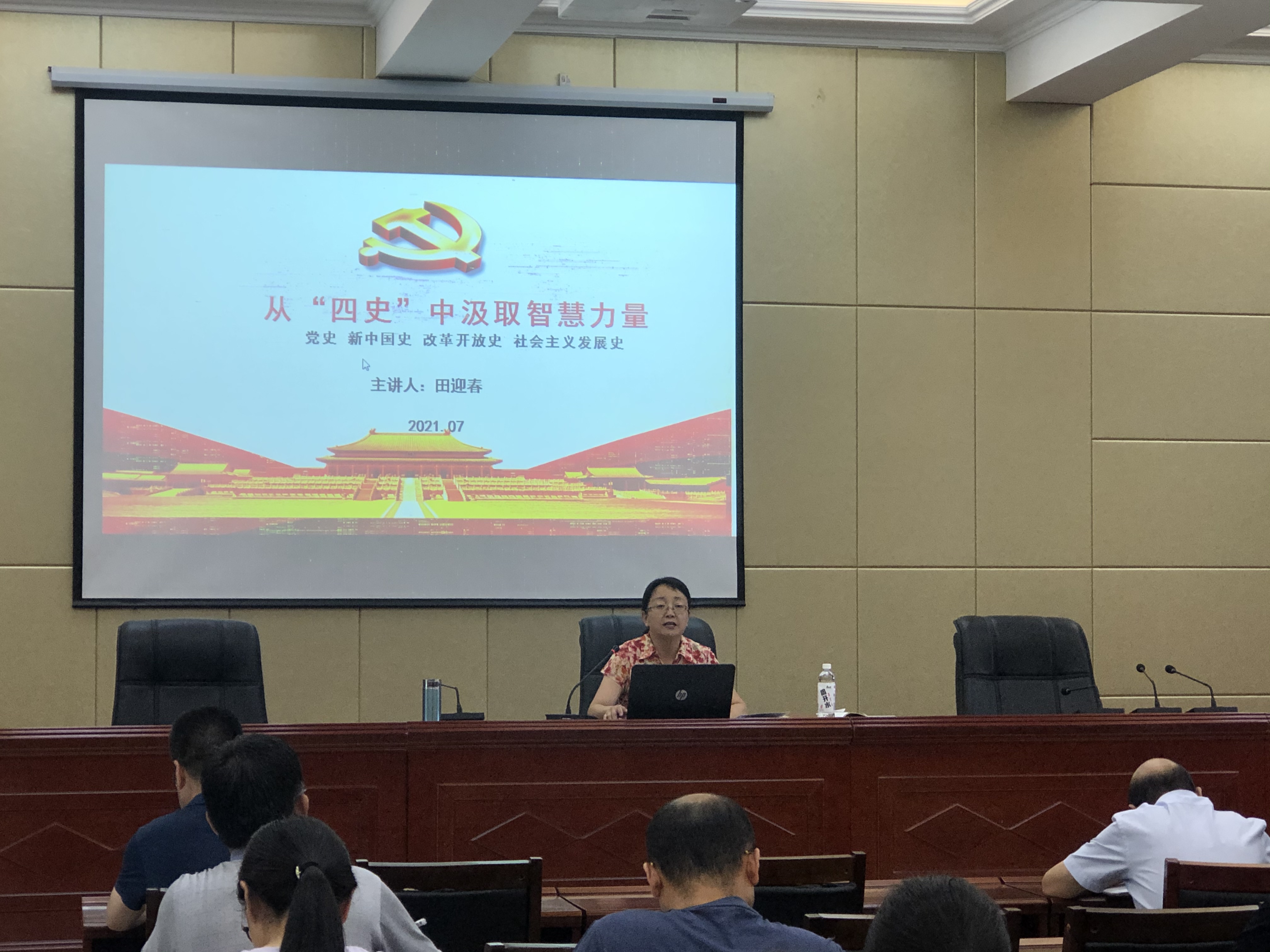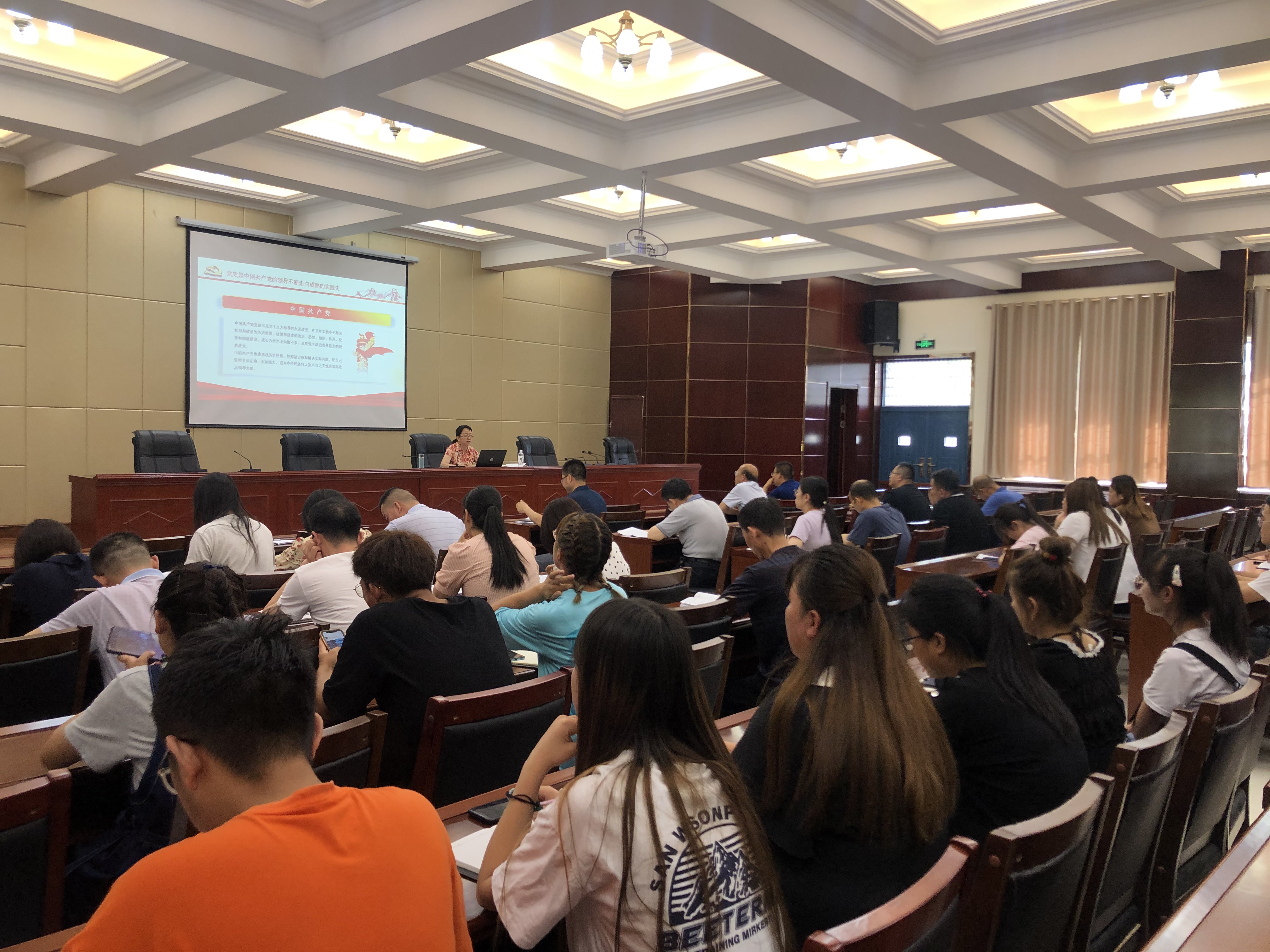 為進(jìn)一步教育引導(dǎo)廣大黨員師生學(xué)史明理、學(xué)史增信、學(xué)史崇德、學(xué)史力行,推進(jìn)黨史學(xué)習(xí)教育走深走實,7月8日,院黨委委員,副院長田迎春以“從四史中汲取智慧和力量”為題,向經(jīng)濟管理系黨總支、建筑工程系黨總支師生講了一堂精彩生動的黨課,黨課在行樹樓北側(cè)報告廳舉行,2系黨員師生80多人參加了學(xué)習(xí)。
