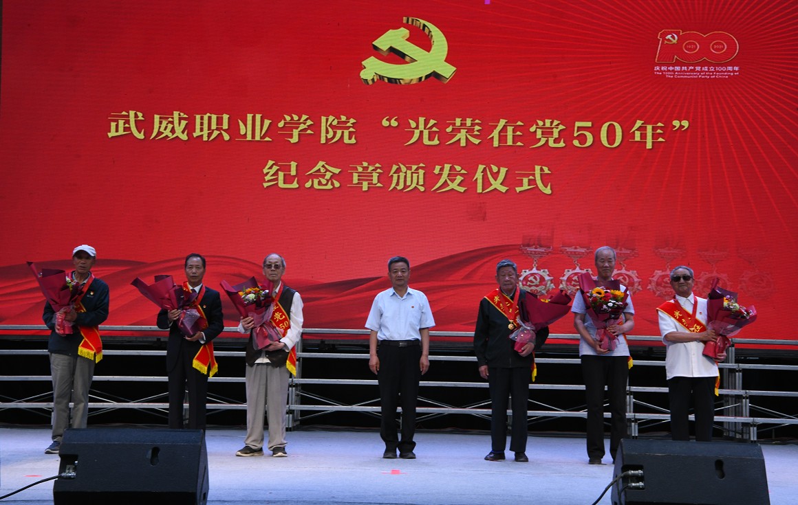 首先舉行了“光榮在黨50年”紀(jì)念章頒發(fā)儀式,學(xué)院黨委委員、副院長(zhǎng)王永緒副教授宣讀《武威職業(yè)學(xué)院獲得“光榮在黨50年”紀(jì)念章黨員名單,學(xué)院黨委書(shū)記、院長(zhǎng)趙明教授向獲得紀(jì)念章的6名老黨員代表頒發(fā)紀(jì)念章。老黨員在不同歷史階段,為黨和國(guó)家教育事業(yè)作出了突出貢獻(xiàn),為學(xué)院高質(zhì)量發(fā)展打下了堅(jiān)實(shí)根基。每一位老黨員都是學(xué)院奮斗史上的一個(gè)縮影,我們要永遠(yuǎn)銘記他們的卓越貢獻(xiàn),凝聚對(duì)他們的感激之情!