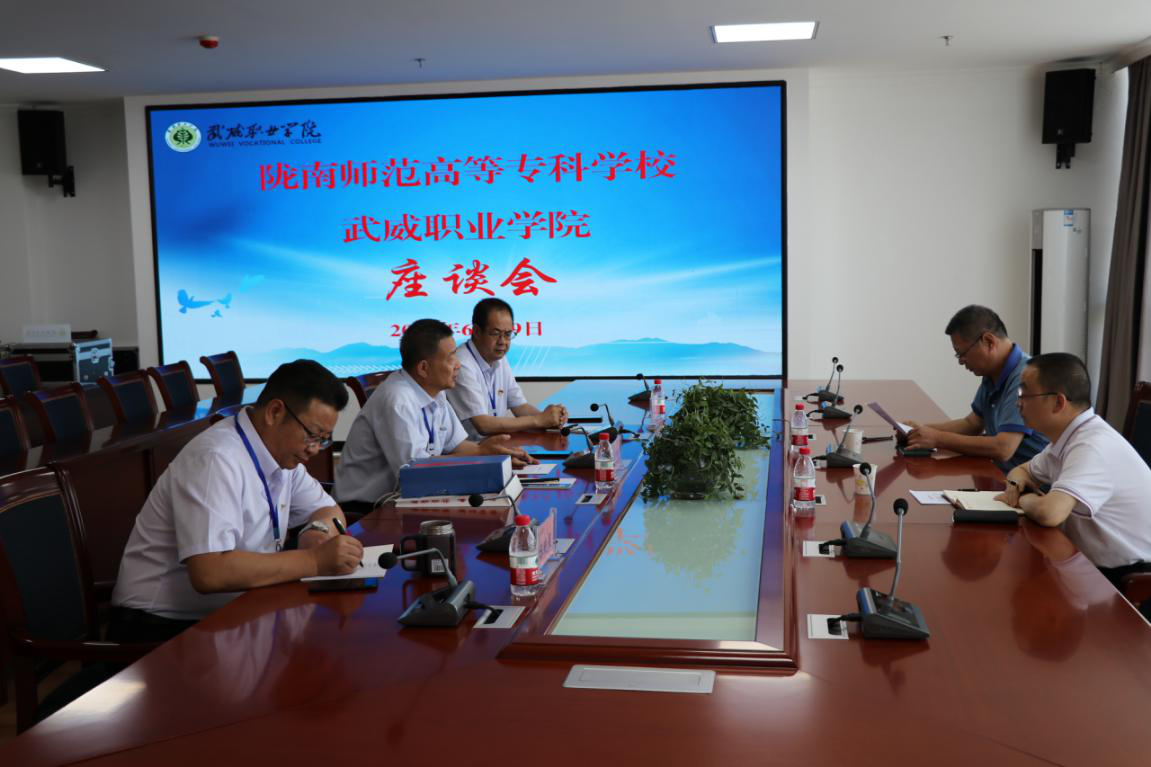 座談會上,趙明向余學軍一行詳細介紹了學院建設發(fā)展歷程、專業(yè)建設、師資隊伍建設、招生就業(yè)、科研服務、校企合作、與中國科學院合作辦學——中科低碳新能源技術學院建設和“雙高計劃”院校建設等情況。余學軍介紹了隴南示范高等專科學校近年來發(fā)展與建設的基本情況,并就職業(yè)院校發(fā)展及管理經驗進行了交流。