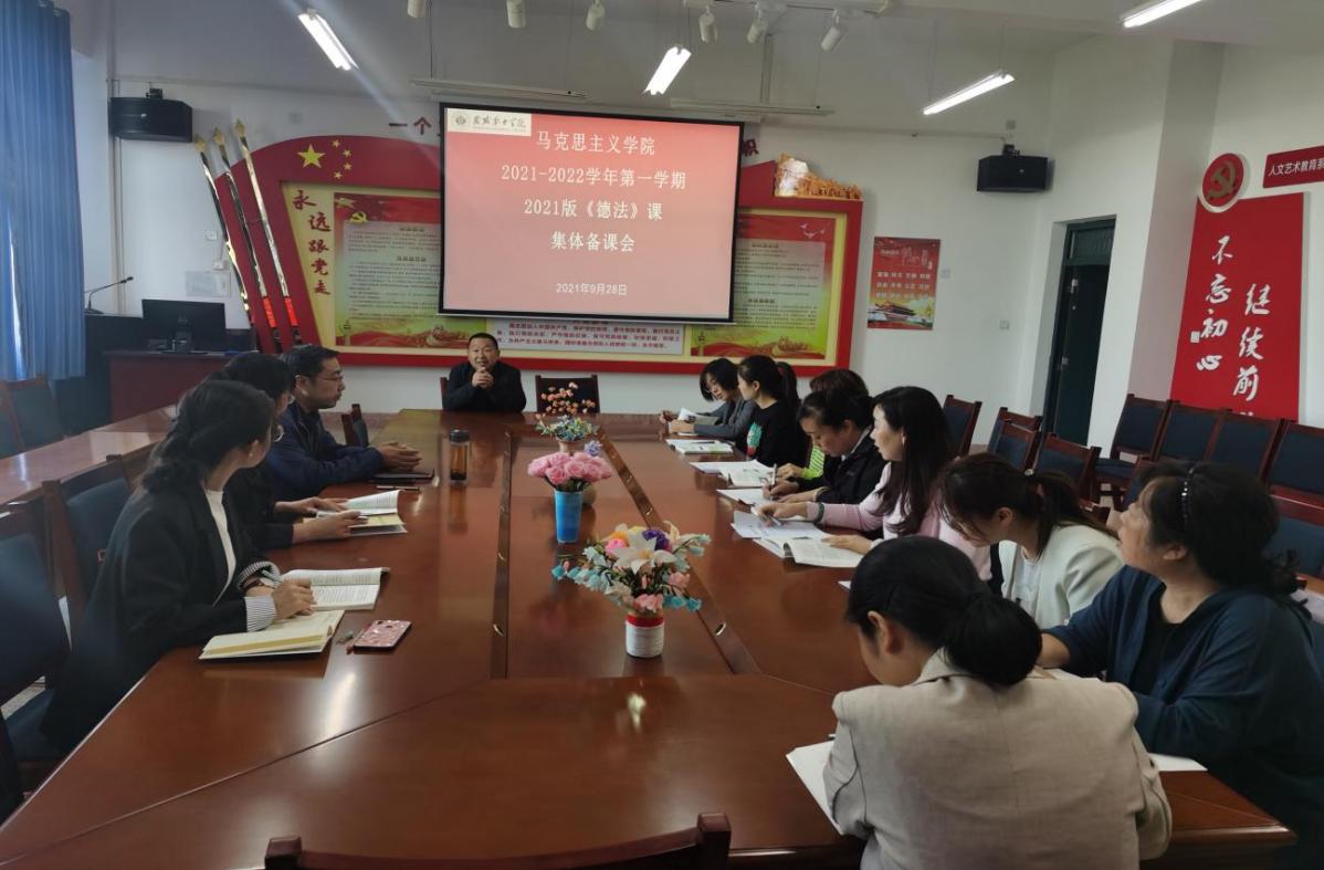 9月28日,馬克思主義學院思政課教師教師進行了《思想道德與法治》課程2021版新教材集體備課會,全體思政課專職教師參加了會議。
