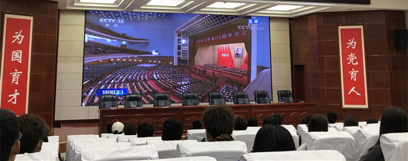 10月9日,紀念辛亥革命110周年大會在北京人民大會堂隆重舉行。學院領導班子成員、黨員干部和師生代表分別在能源科技樓811會議室、大學生活動中心菁英廳、各系多媒體教室集中收看大會直播,認真聆聽習近平總書記重要講話。