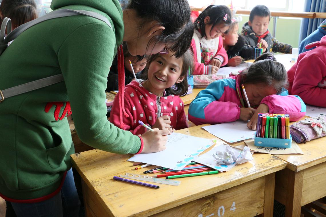 游戲環(huán)節(jié)將此次活動一次又一次的推向高潮,伴著一曲“天之大”本次志愿者活動落下了帷幕。最后志愿者收集小朋友的心愿卡粘貼在暖心墻上并與四壩中學(xué)的師生合影留念。