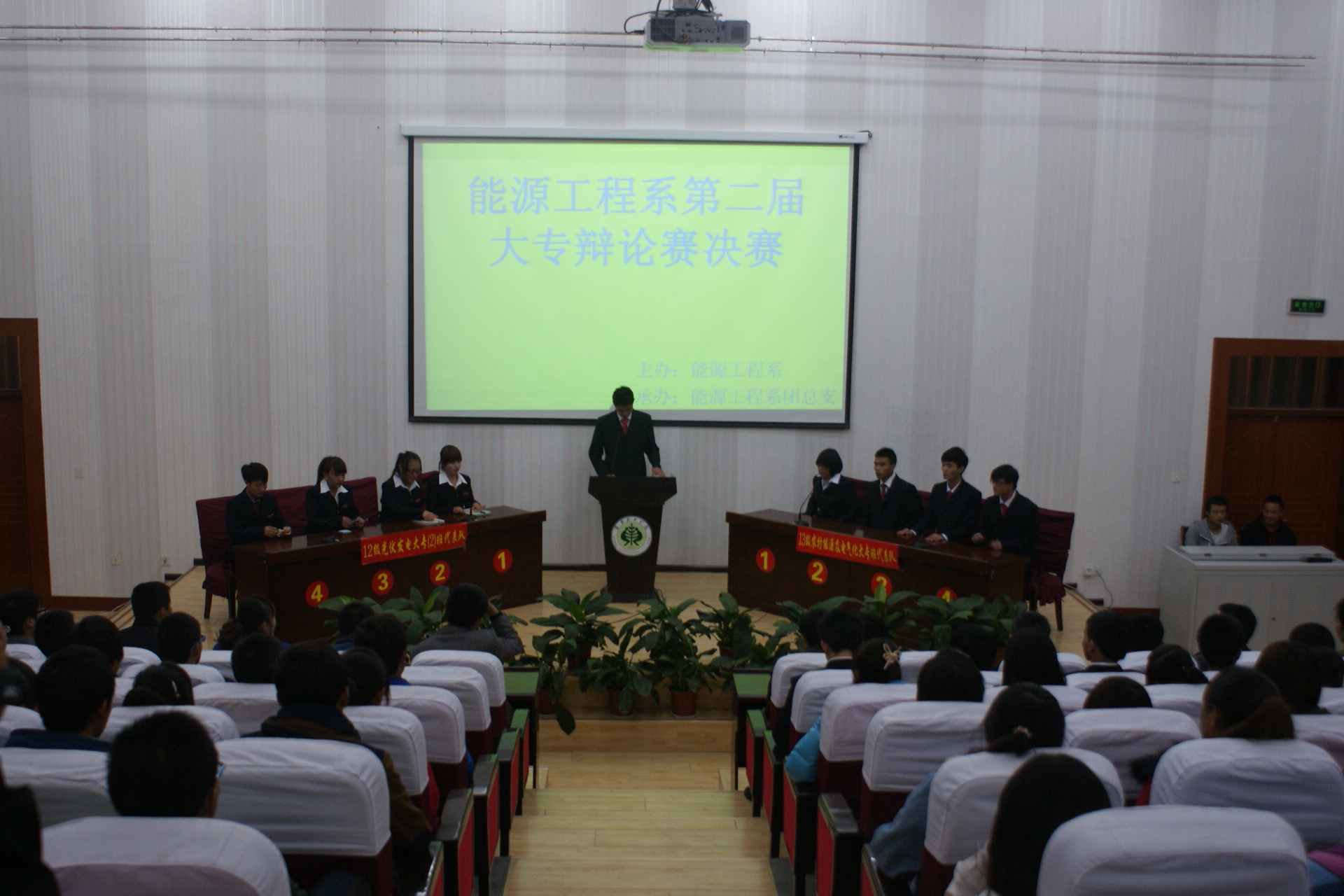 11月10日晚,能源工程系在東階梯教室成功舉辦了能源工程系第二屆大專生辯論賽三、四名和冠、亞軍爭奪戰(zhàn)。能源工程系全體老師和大一、大二學(xué)生共270人參加了本次決賽。本次比賽在班級初賽的基礎(chǔ)上有8支代表隊(duì)的32名選手代表班級參加了全系比賽,經(jīng)過系部復(fù)賽、半決賽兩個階段的激烈競爭,最終有四支代表隊(duì)晉級決賽。