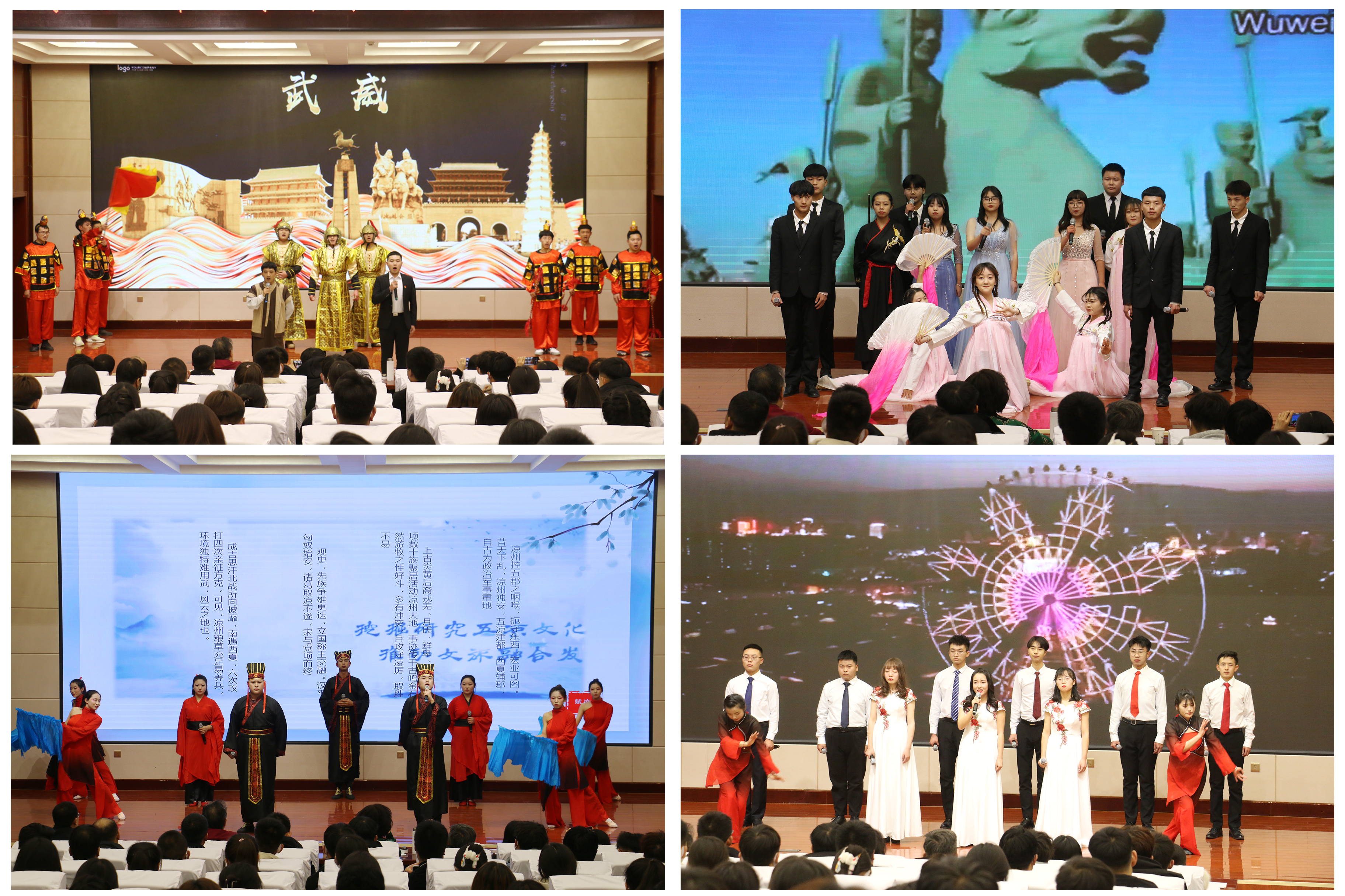比賽現(xiàn)場精彩紛呈,高潮迭起,來自11個教學(xué)院系推選的節(jié)目匯聚菁英廳,以配樂吟誦、伴舞、書法、武術(shù)、情景劇表演等形式,上演“車馬相交錯,歌吹日縱橫”的涼州遺韻。一首首字正腔圓的吟誦、一場場聲情并茂的演繹,全方位展示了涼州文化深厚的底蘊(yùn)和鮮明的地域特色。