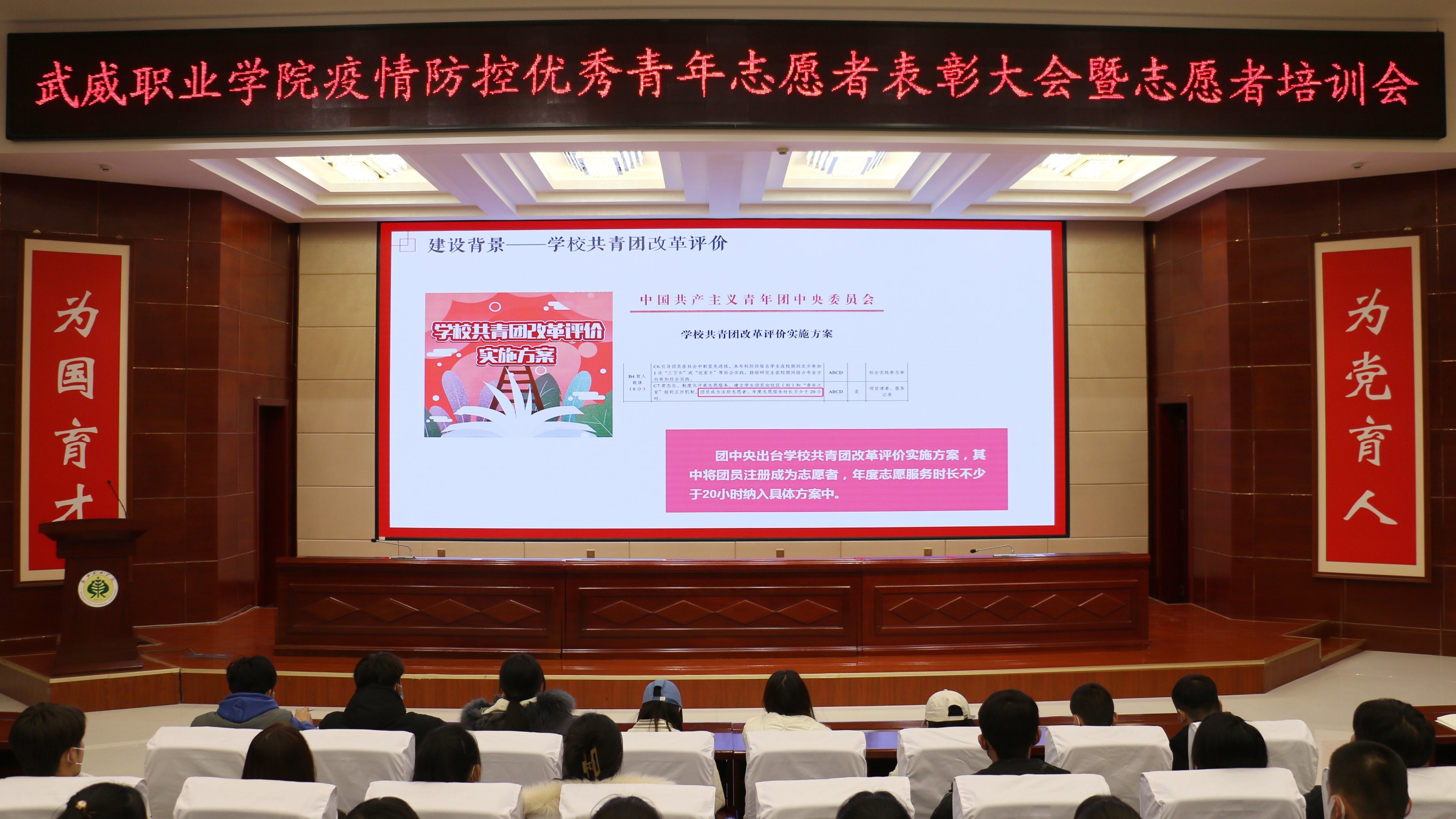在表彰大會(huì)上,宣讀了《武威職業(yè)學(xué)院關(guān)于對(duì)疫情防控期間優(yōu)秀青年志愿者進(jìn)行通報(bào)表?yè)P(yáng)的決定》,為疫情防控期間優(yōu)秀青年志愿者代表頒發(fā)了榮譽(yù)證書(shū)。