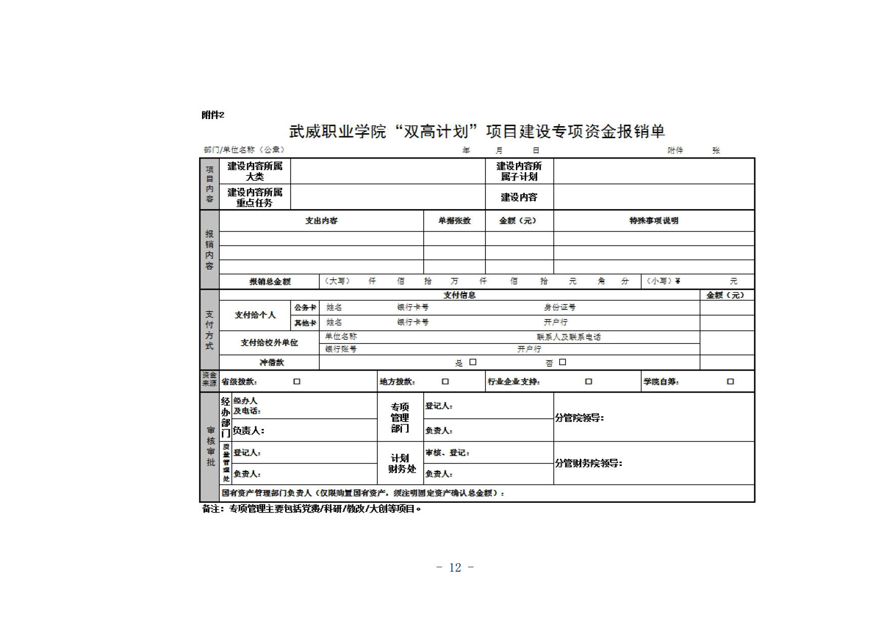 關(guān)于印發(fā)《武威職業(yè)學(xué)院“雙高計(jì)劃”項(xiàng)目建設(shè)專項(xiàng)資金管理辦法》的通知