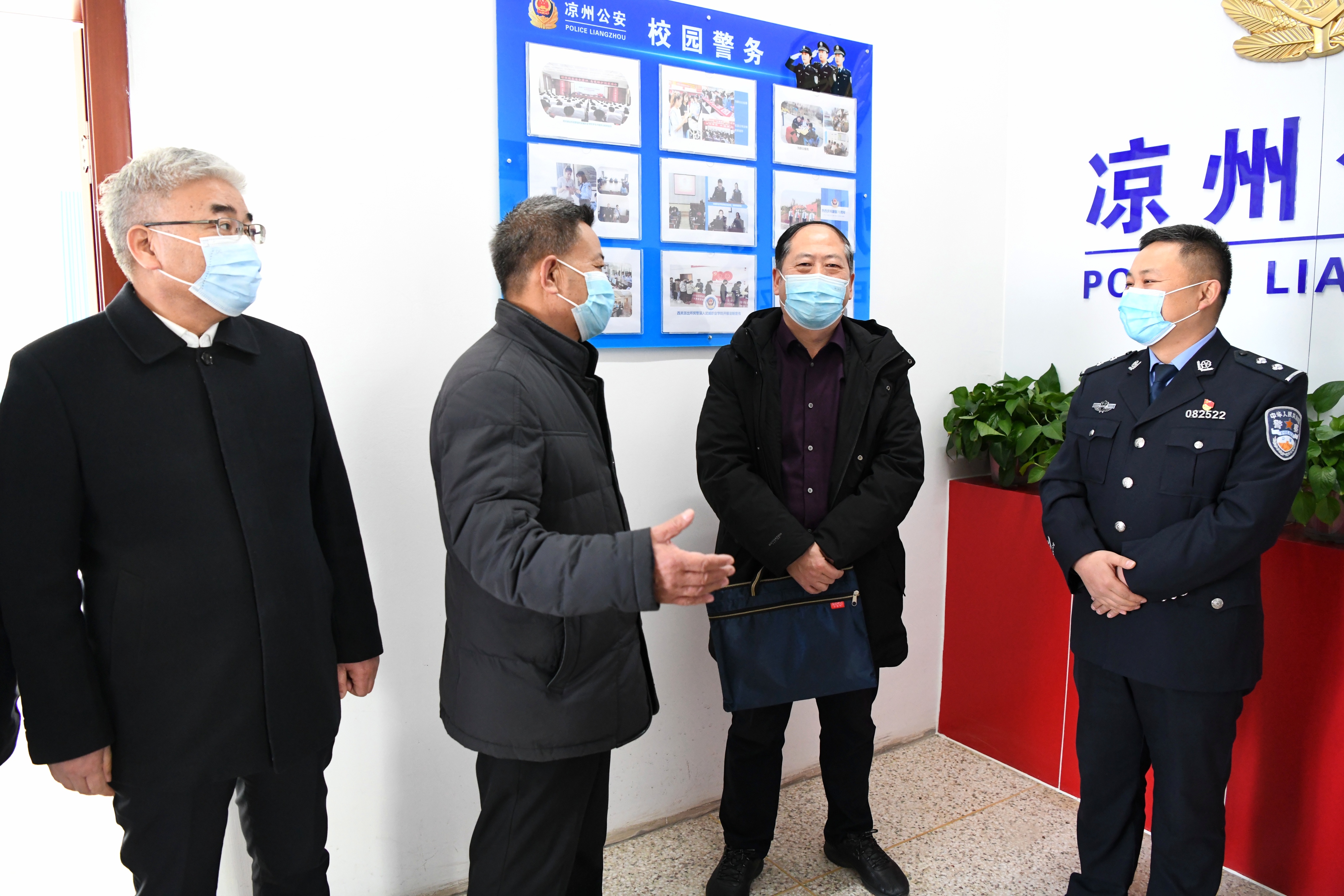 1月13日下午,平安甘肅建設(shè)工作第八考評(píng)組在省高等學(xué)校服務(wù)中心主任崔亮的帶領(lǐng)下來校實(shí)地檢查考評(píng)2021年度平安校園建設(shè)工作。市委政法委常務(wù)副書記連林中,學(xué)院黨委書記、院長趙明,黨委委員、副院長何毅,黨委委員、紀(jì)委書記、監(jiān)察專員陳曉煜,黨委委員、副院長王守云陪同檢查考評(píng)。