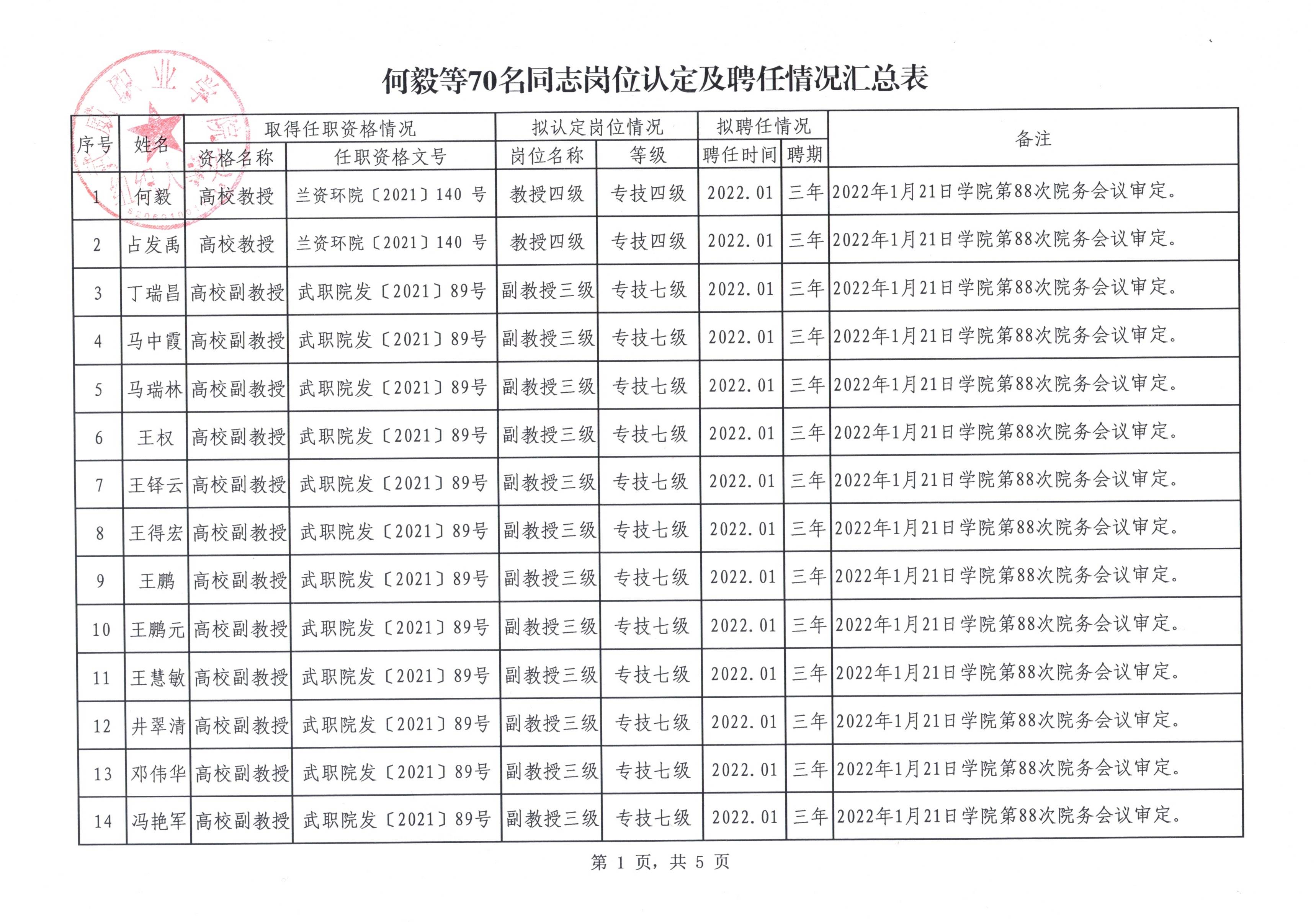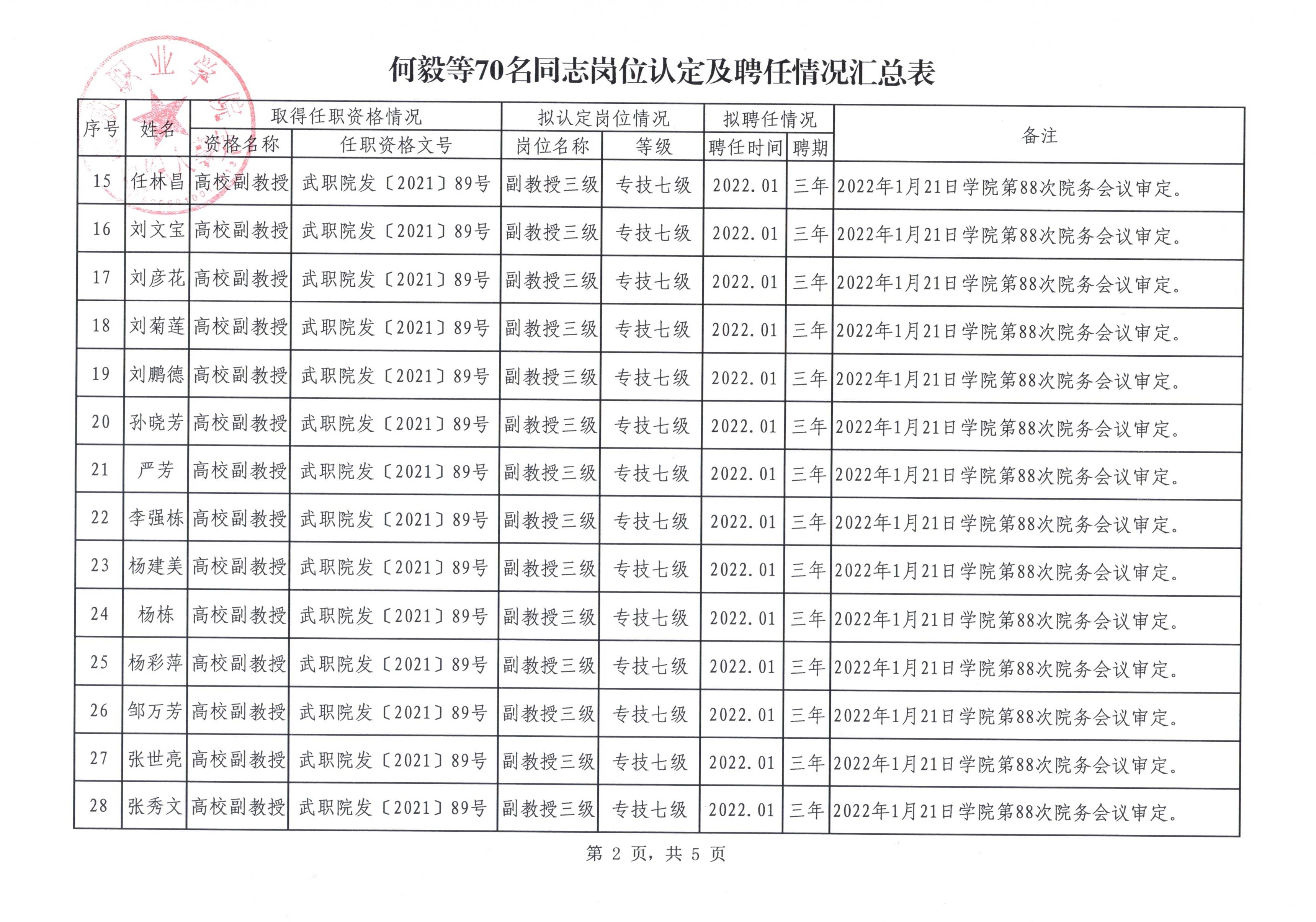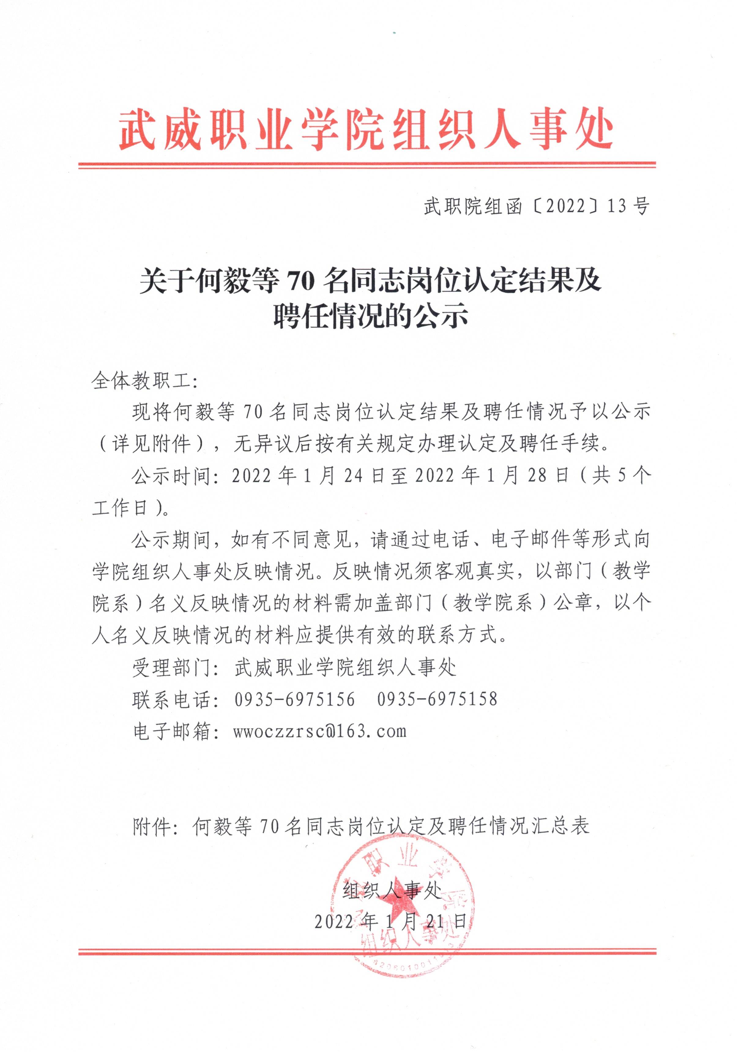 關(guān)于何毅等70名同志崗位認定結(jié)果及聘任情況的公示