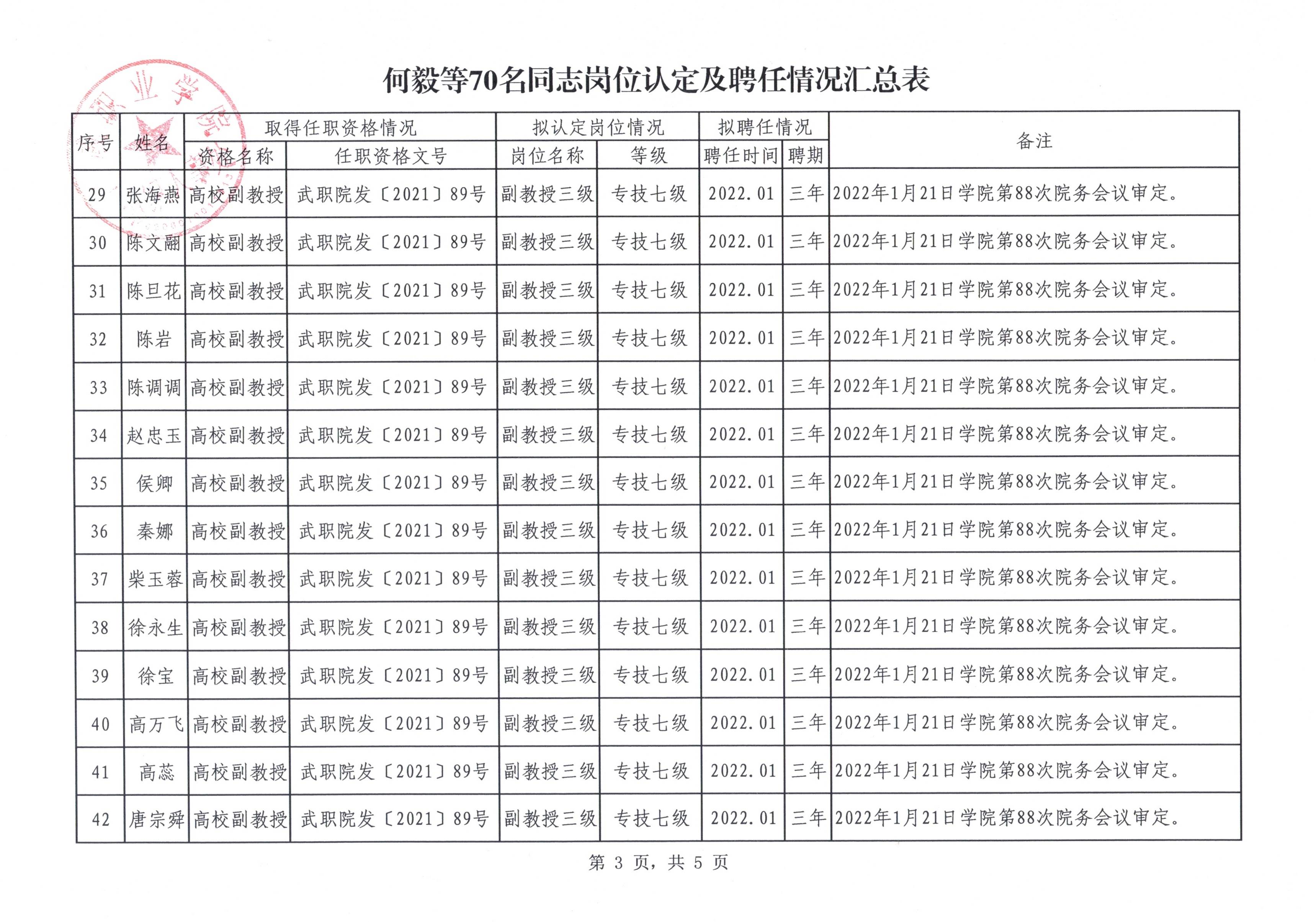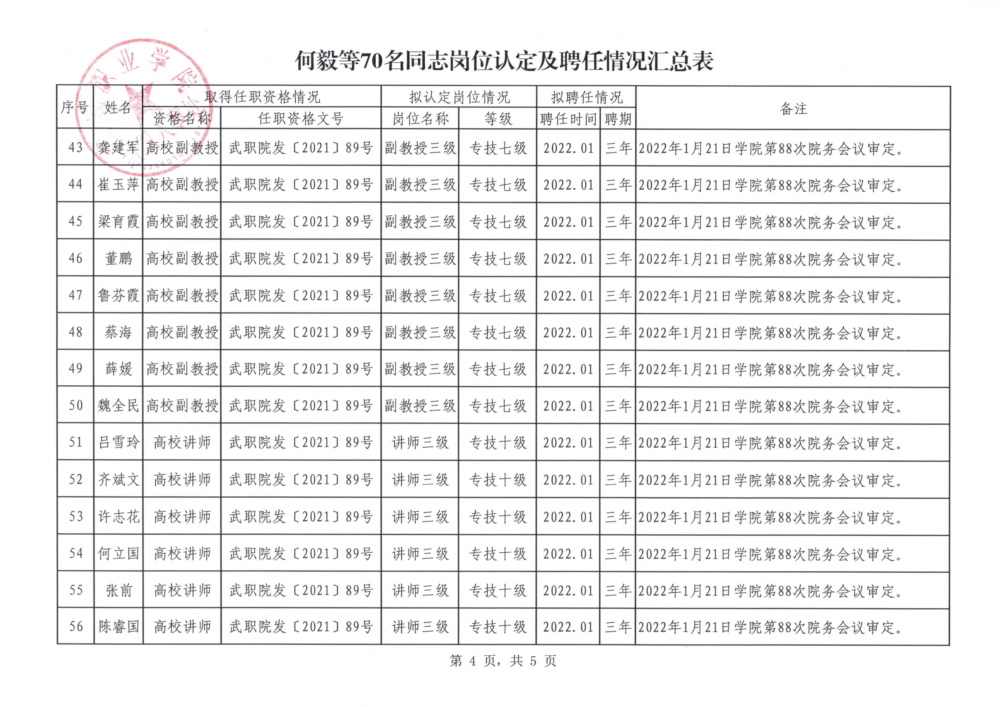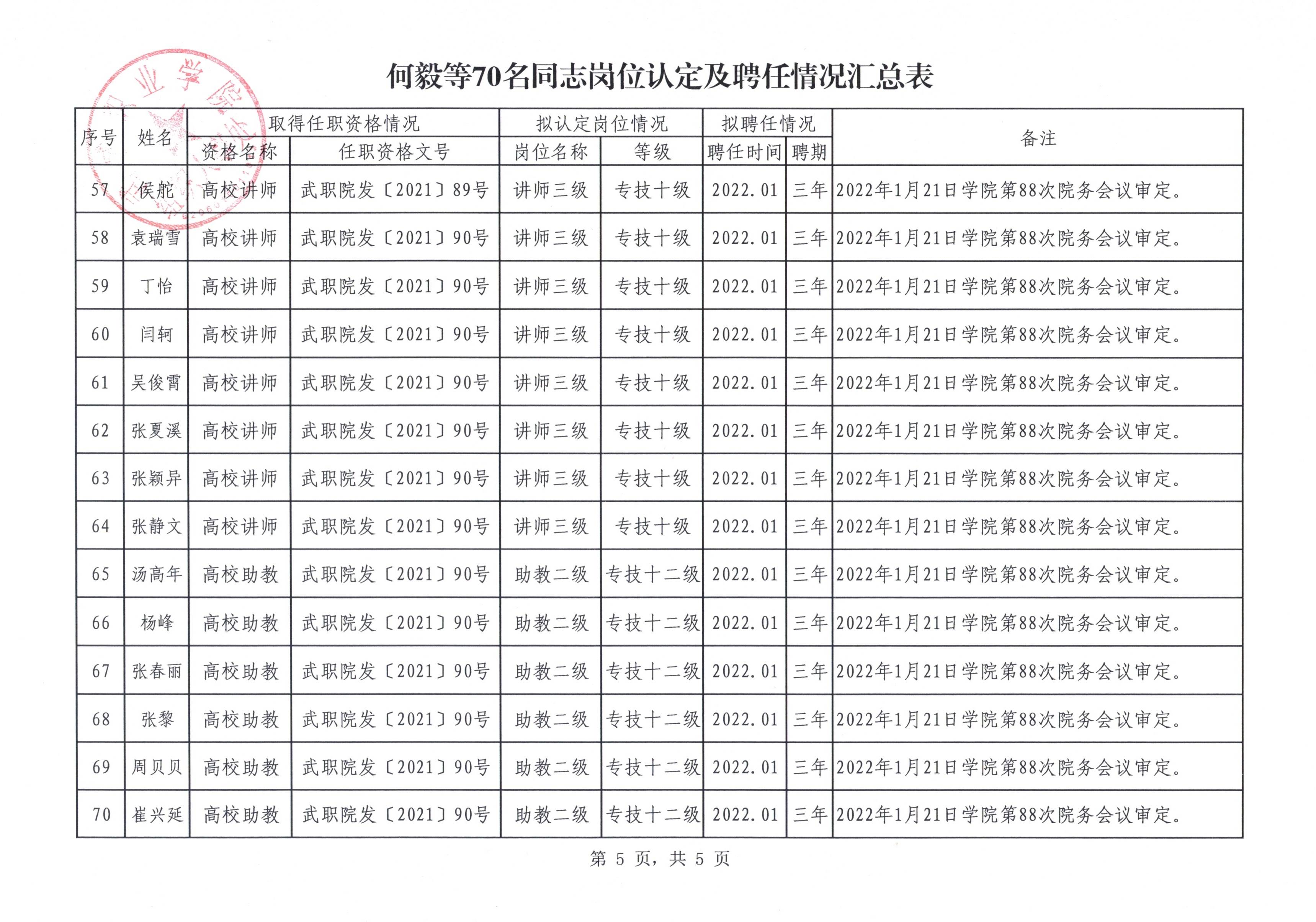 關(guān)于何毅等70名同志崗位認定結(jié)果及聘任情況的公示