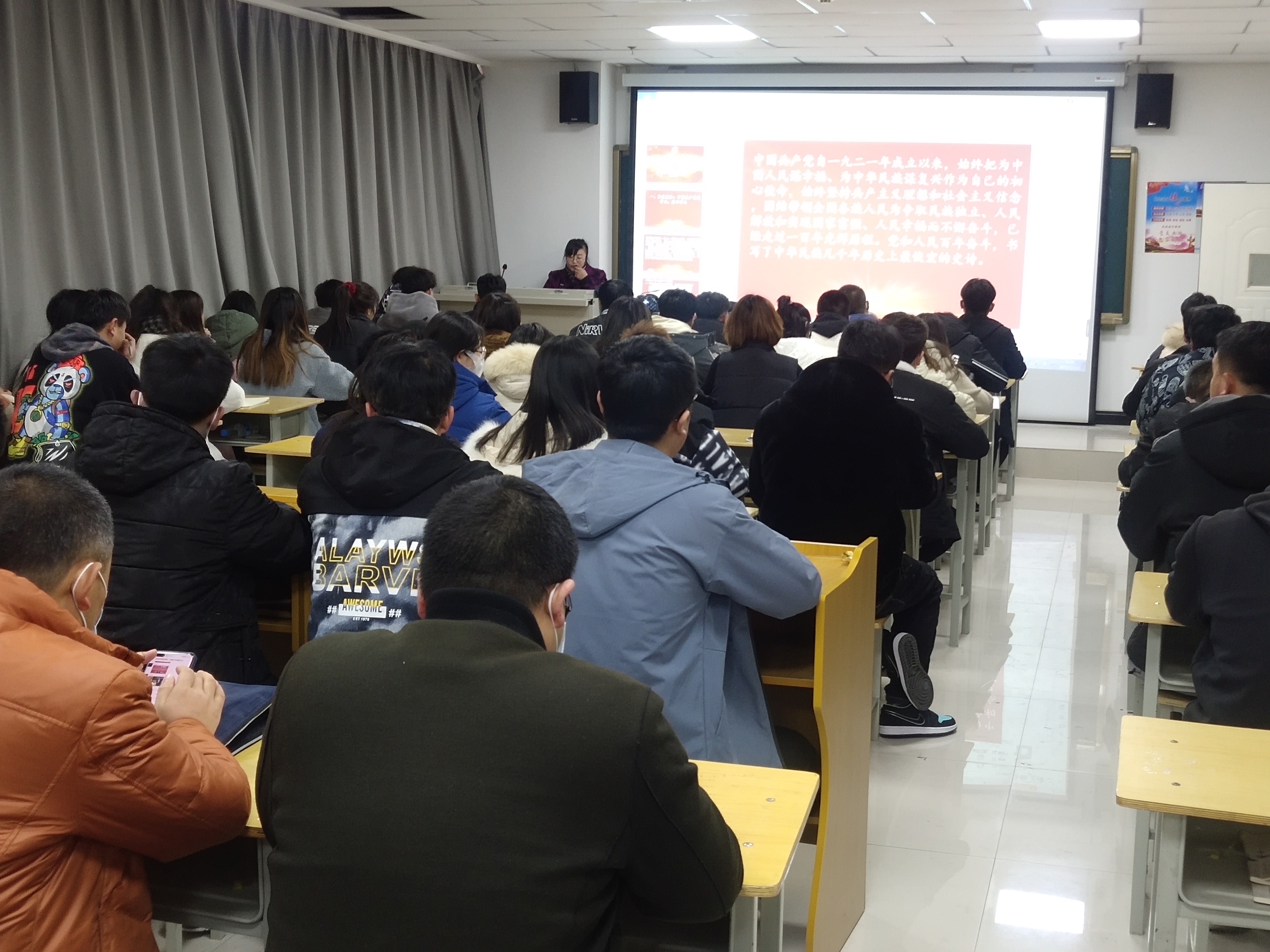 王靜老師緊緊圍繞學(xué)習(xí)貫徹黨的十九屆六中全會精神,聯(lián)系歷史、現(xiàn)實(shí)和未來,從黨的十九屆六中全會的總體概況、精髓要義、重大意義三個方面進(jìn)行宣講,全面、準(zhǔn)確、深入地闡釋了中國共產(chǎn)黨的百年奮斗成就和歷史經(jīng)驗(yàn)。與會師生紛紛表示,要深入學(xué)習(xí)黨的十九屆六中全會精神,做到學(xué)深悟透,確保把黨的十九屆六中全會精神把握準(zhǔn)、理解透、落實(shí)好,把深入學(xué)習(xí)黨的十九屆六中全會精神同推動工作、學(xué)習(xí)結(jié)合起來,更加奮發(fā)有為地做好各項(xiàng)工作。
