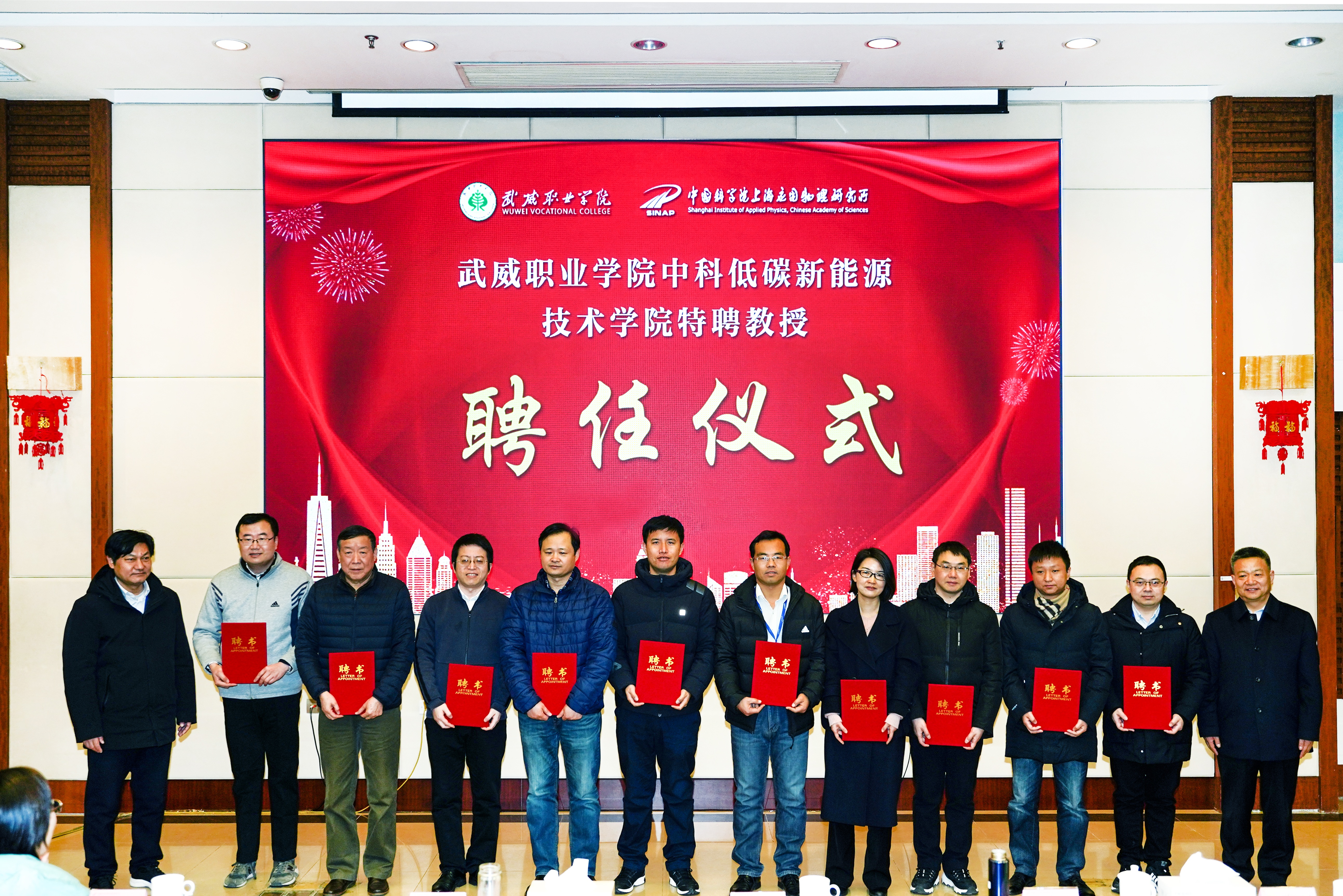 聘任儀式上,學(xué)院黨委副書(shū)記翟存祥宣讀了《武威職業(yè)學(xué)院 中國(guó)科學(xué)院上海應(yīng)用物理研究所關(guān)于續(xù)聘楊存忠等17名同志擔(dān)任中科低碳新能源技術(shù)學(xué)院特聘教授的通知》。隨后,上海應(yīng)用物理研究所所長(zhǎng)戴志敏,學(xué)院黨委書(shū)記、院長(zhǎng)趙明向17名特聘教授頒發(fā)了聘書(shū)。