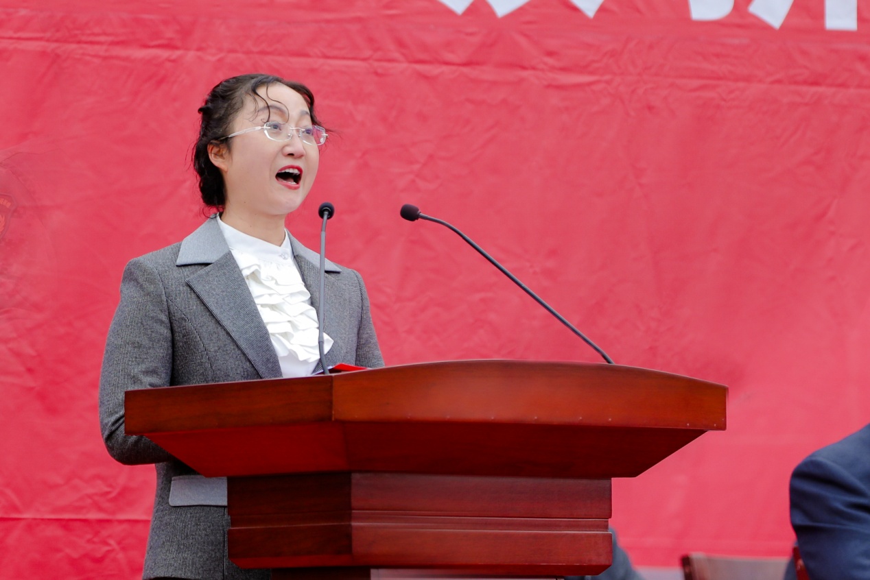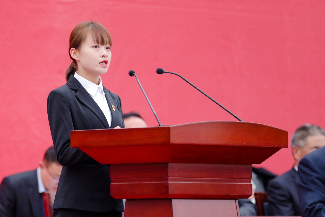 上午9時,大會在莊嚴的國歌聲中拉開序幕,二十余名學生代表致獻詞《請黨放心,強國有我》,用最飽滿的聲音,堅定地向黨道出了青春的誓言。