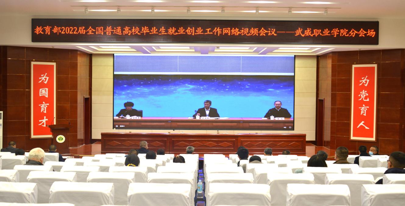 11月19日下午,教育部、人力資源社會(huì)保障部召開(kāi)2022屆普通高校畢業(yè)生就業(yè)視頻會(huì)議。教育部黨組書(shū)記、部長(zhǎng)懷進(jìn)鵬,人力資源社會(huì)保障部黨組成員、副部長(zhǎng)李忠出席會(huì)議并講話(huà),教育部黨組成員、副部長(zhǎng)翁鐵慧主持會(huì)議。我院設(shè)立武威職業(yè)學(xué)院分會(huì)場(chǎng),學(xué)院黨委書(shū)記、院長(zhǎng)趙明,副院長(zhǎng)王守云,招就處、雙創(chuàng)中心、學(xué)工處相關(guān)負(fù)責(zé)同志,各教學(xué)院系黨總支書(shū)記、主任、就業(yè)工作輔導(dǎo)員及畢業(yè)班班主任共計(jì)86人,在學(xué)院學(xué)生發(fā)展中心菁英廳集中參加網(wǎng)絡(luò)視頻會(huì)議。