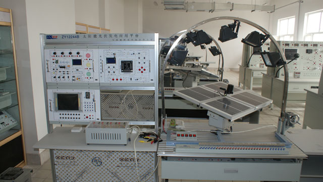 新能源實(shí)訓(xùn)中心建有光伏發(fā)電實(shí)訓(xùn)室和農(nóng)村能源實(shí)訓(xùn)室,可開(kāi)設(shè)光伏發(fā)電模擬實(shí)訓(xùn)、光伏發(fā)電系統(tǒng)原理實(shí)訓(xùn)、風(fēng)光互補(bǔ)發(fā)電實(shí)訓(xùn)、家用熱水器安裝實(shí)訓(xùn)、太陽(yáng)能集熱管性能實(shí)訓(xùn)、太陽(yáng)能輻射觀測(cè)、氣象數(shù)據(jù)測(cè)試、供配電技術(shù)實(shí)訓(xùn)、電力系統(tǒng)機(jī)電保護(hù)實(shí)訓(xùn)、沼氣發(fā)酵等實(shí)訓(xùn)項(xiàng)目,配有二十五臺(tái)計(jì)算機(jī),可進(jìn)行仿真模擬實(shí)驗(yàn)與實(shí)訓(xùn),其中光伏發(fā)電實(shí)訓(xùn)平臺(tái)是由我院與湖北眾友科技實(shí)業(yè)股份有限公司共同開(kāi)發(fā)研制,實(shí)訓(xùn)室設(shè)計(jì)理念先進(jìn)、設(shè)施設(shè)備齊全,達(dá)到了省內(nèi)同類(lèi)高職院校能源類(lèi)專(zhuān)業(yè)的一流水平。