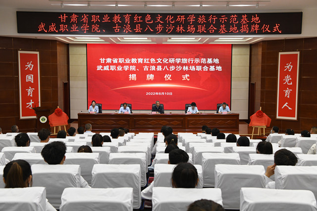 首批甘肅省職業(yè)教育紅色文化研學(xué)旅行示范基地——武威職業(yè)學(xué)院 古浪縣八步沙林場聯(lián)合基地揭牌儀式隆重舉行