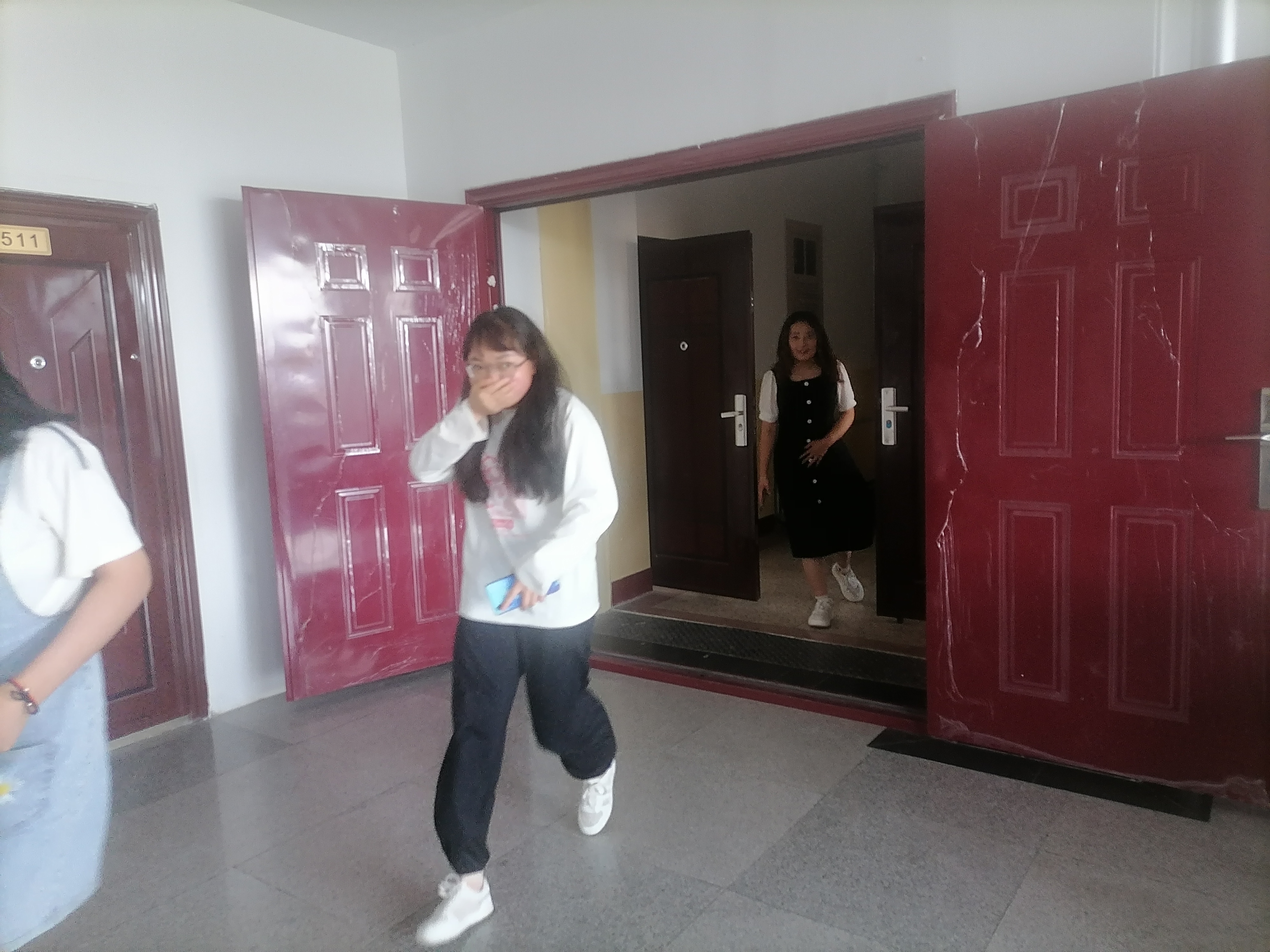 ? ?下午16:50隨著警報(bào)的響起,煙霧彈的點(diǎn)燃,上課老師組織學(xué)生疏散,各班學(xué)生在老師們的指揮下,按照指定路線,貓著腰,用手、袖口捂著嘴鼻迅速有序地進(jìn)行緊急疏散,全體師生撤離到安全地帶。為保證所有同學(xué)安全撤離,學(xué)生會(huì)成員迅速清點(diǎn)了各班級人數(shù),并像楊老師匯報(bào)。
