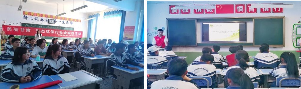 團(tuán)隊(duì)成員在天祝職業(yè)中專教務(wù)處主任張健瑞教師的指引來到21級(jí)3班,志愿者通過播放PPT向同學(xué)們宣講了生態(tài)環(huán)保的重要性以及國家對(duì)于生態(tài)環(huán)保的做出工作部署及法律法規(guī),并且向同學(xué)們進(jìn)行提問了生態(tài)環(huán)保知識(shí)、發(fā)放了調(diào)查問卷。