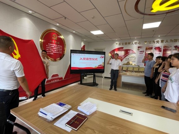 在“七一”來臨之際,為加強黨員教育、增強黨性觀念,中科低碳新能源技術(shù)學(xué)院黨總支于2022年6月27日下午在能源樓六樓黨員活動室組織開展了新黨員入黨宣誓儀式。學(xué)院黨總支全體黨員以及師生預(yù)備黨員參加宣誓儀式。
