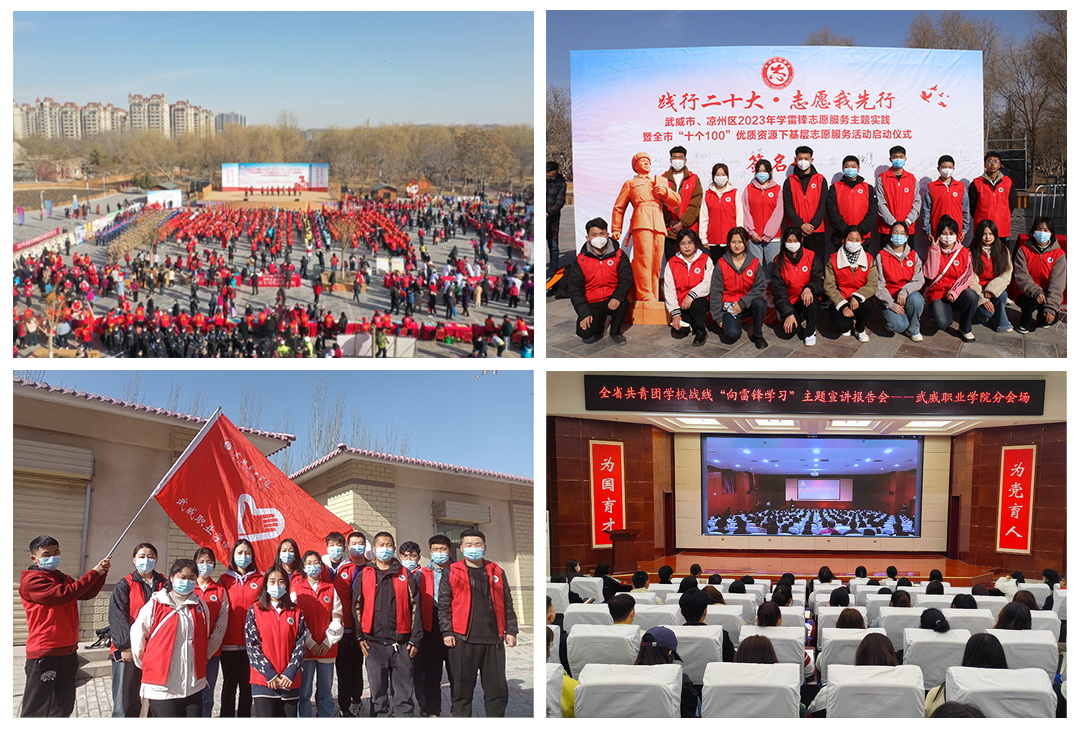 活儀式結(jié)束后,校團(tuán)委根據(jù)上級組織安排部署,3月5日組織青年志愿者觀看了全省共青團(tuán)學(xué)校戰(zhàn)線“向雷鋒學(xué)習(xí)”主題宣講線上直播報(bào)告會,組隊(duì)參加了武威市、涼州區(qū)2023年“踐行二十大 志愿我先行”學(xué)雷鋒志愿服務(wù)主題實(shí)踐暨全市“十個100”優(yōu)質(zhì)資源下基層志愿服務(wù)活動啟動儀式,3月6日組隊(duì)參加了2023年武威市人體器官捐獻(xiàn)緬懷紀(jì)念活動,為學(xué)校學(xué)雷鋒志愿服務(wù)月活動的熱烈開展拉開了序幕,奠定了基礎(chǔ)。