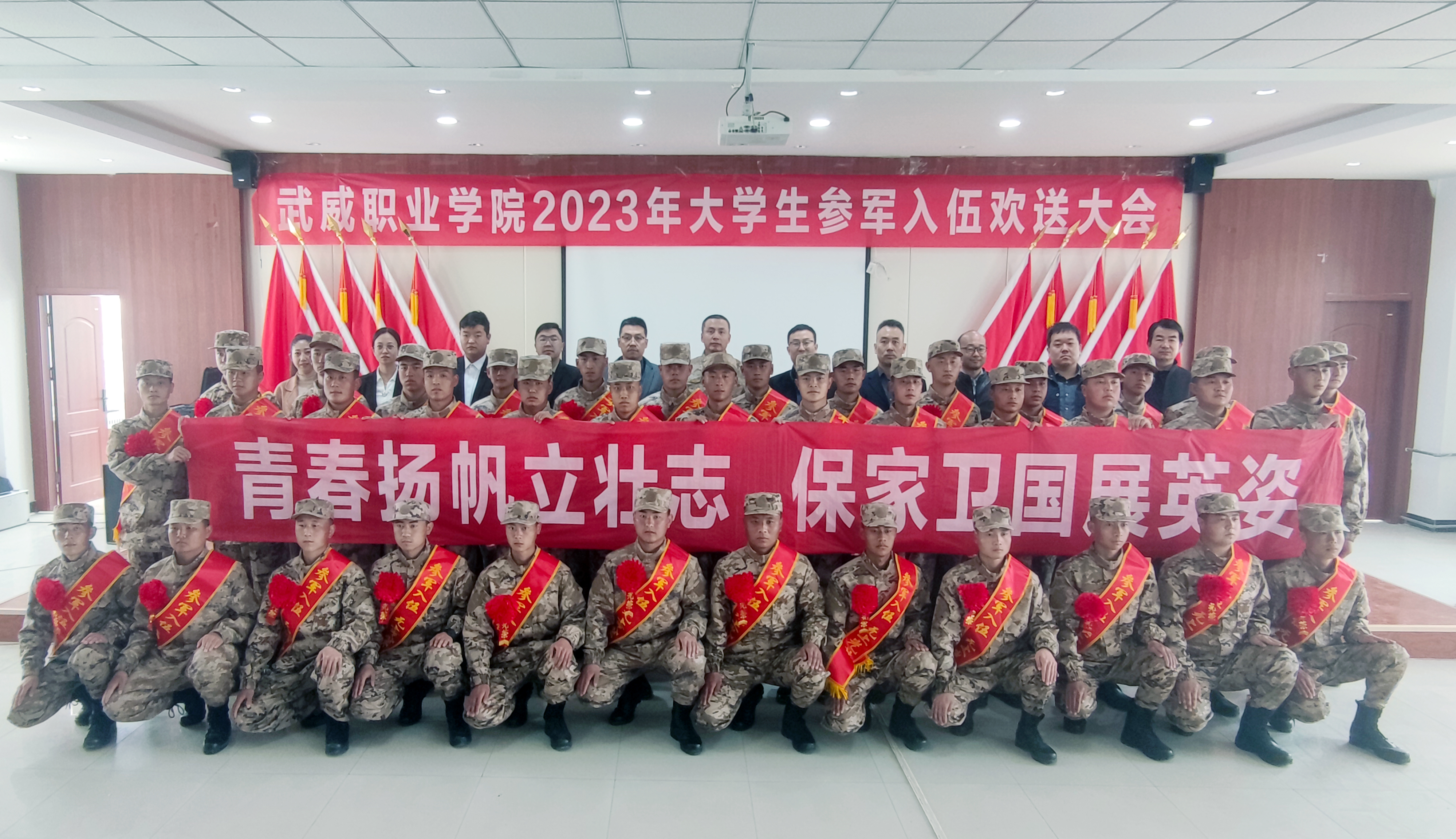 近年來,學(xué)校依據(jù)國家和甘肅省大學(xué)生征兵優(yōu)待政策,出臺(tái)了針對(duì)大學(xué)畢業(yè)生參軍入伍優(yōu)惠政策,廣大學(xué)子攜筆從戎的熱情不斷高漲,為幫助有志于綠色軍營的莘莘學(xué)子圓夢(mèng),學(xué)生工作處(武裝部)按照上級(jí)兵役機(jī)關(guān)文件精神和學(xué)校黨委要求,積極作為,認(rèn)真抓好大學(xué)生征兵各個(gè)環(huán)節(jié)。截止目前,學(xué)校2023年上半年參軍入伍學(xué)生近100人,其中畢業(yè)生60人,高標(biāo)準(zhǔn)提前完成了全年的征兵任務(wù)。