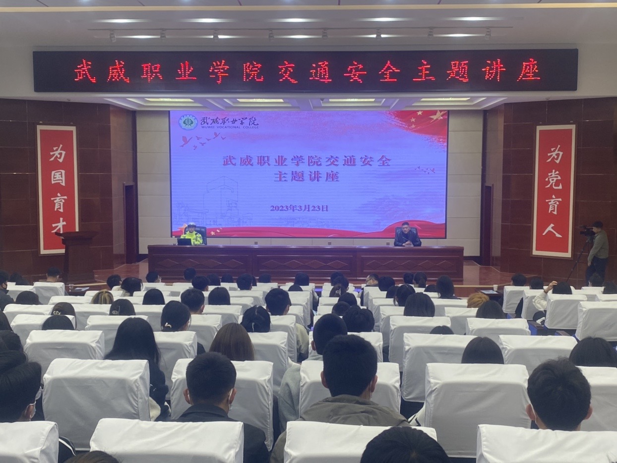為進(jìn)一步提高學(xué)校師生的交通安全知識(shí),提高廣大師生交通法規(guī)意識(shí)、交通安全意識(shí)及自我保護(hù)能力,切實(shí)維護(hù)校園周邊道路交通秩序,3月23日下午,學(xué)校安全保衛(wèi)處邀請(qǐng)武威市公安局涼州分局交警大隊(duì)開展交通安全主題講座。講座由學(xué)校安全保衛(wèi)處負(fù)責(zé)人李欣主持。